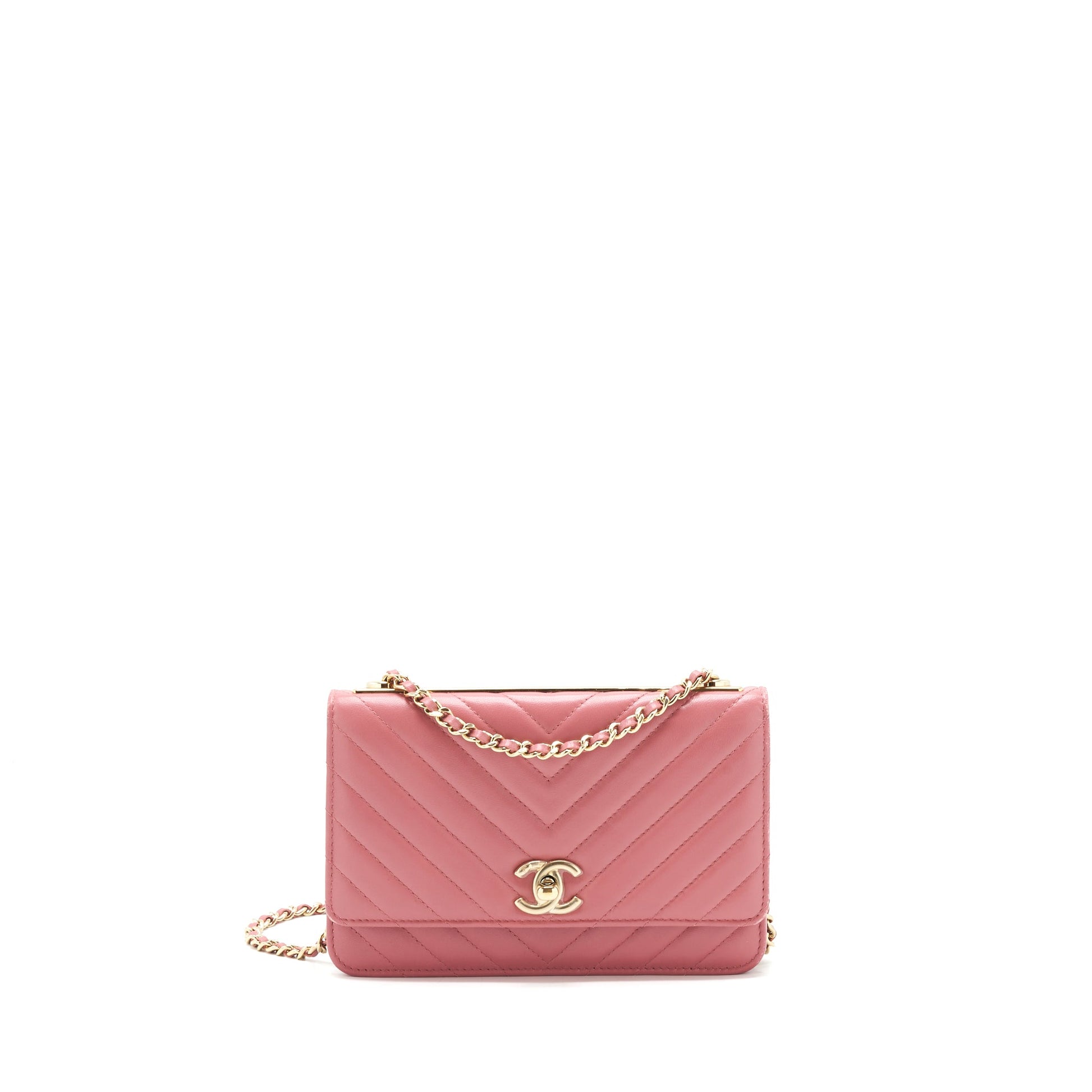 Chanel Chevron trendy CC Wallet on Chain Lambskin pink LGHW