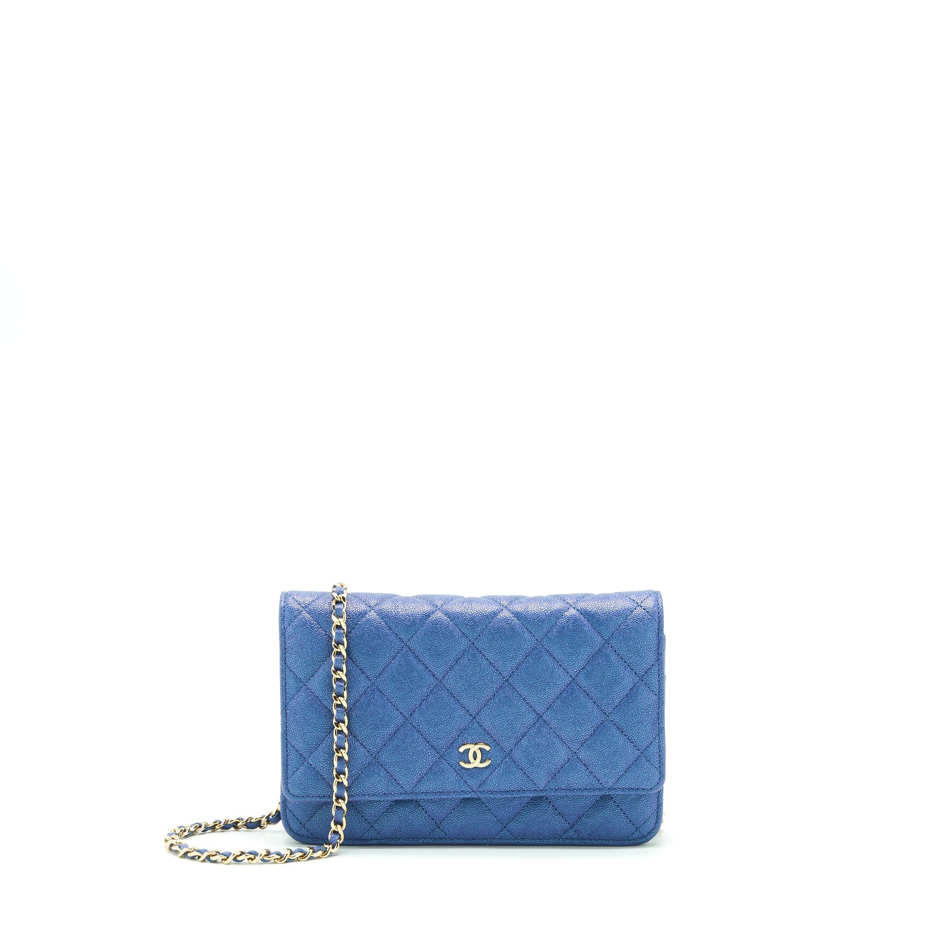 Chanel Classic Wallet On Chain Caviar Iridescent Blue LGHW