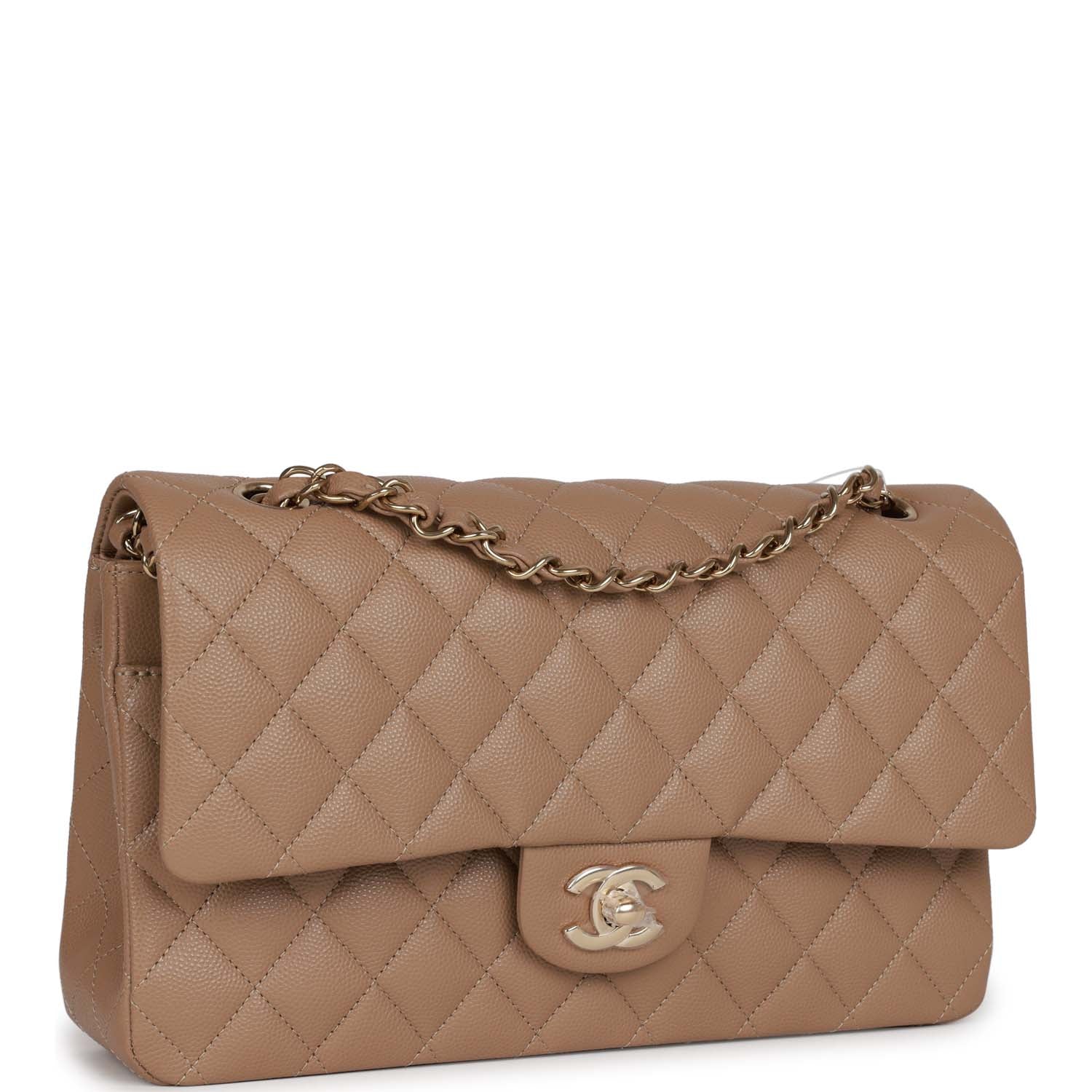 Chanel Medium Classic Double Flap Bag Dark Beige Caviar Light Gold Hardware