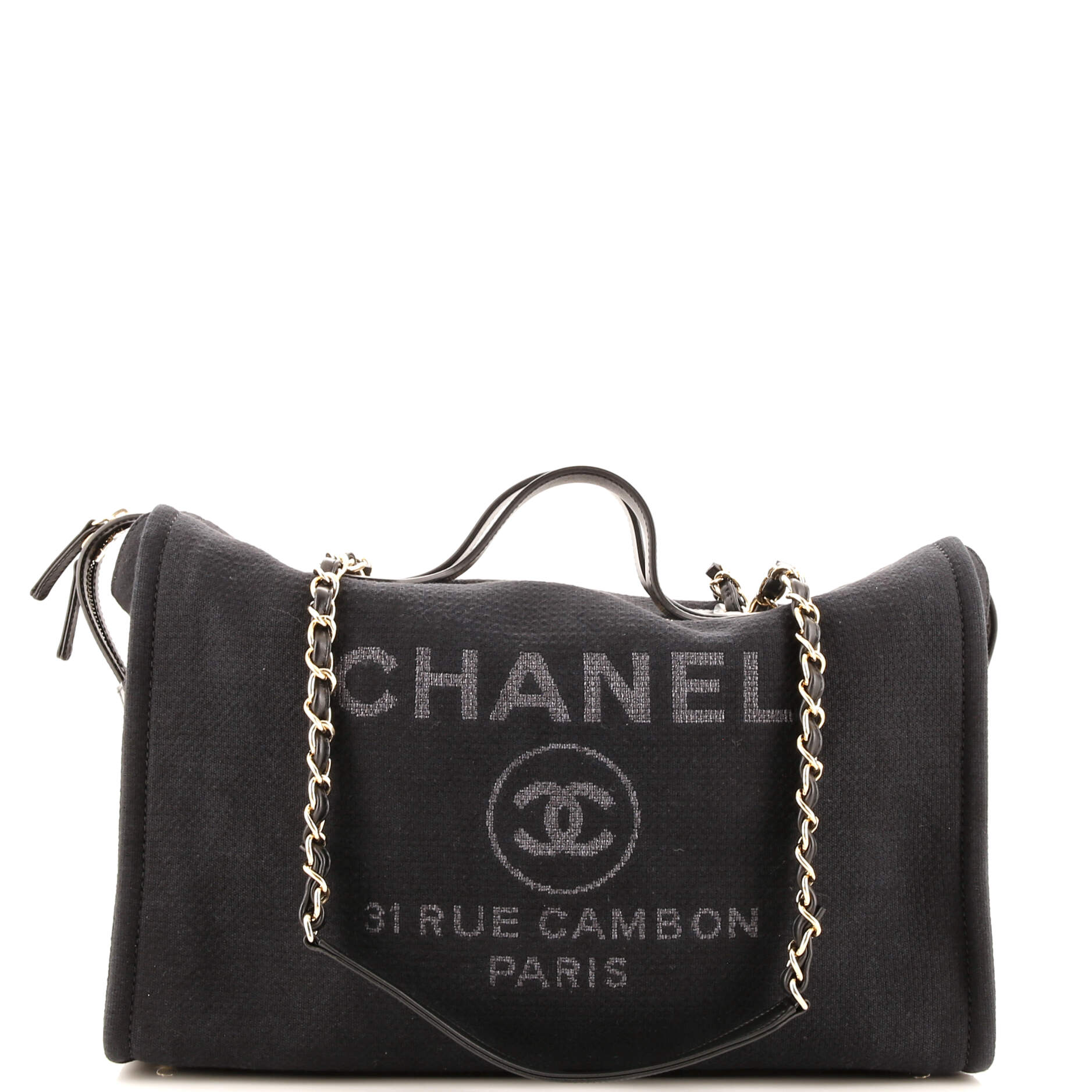 Chanel Deauville NM Top Zip Bowling Bag Mixed Fibers Maxi
