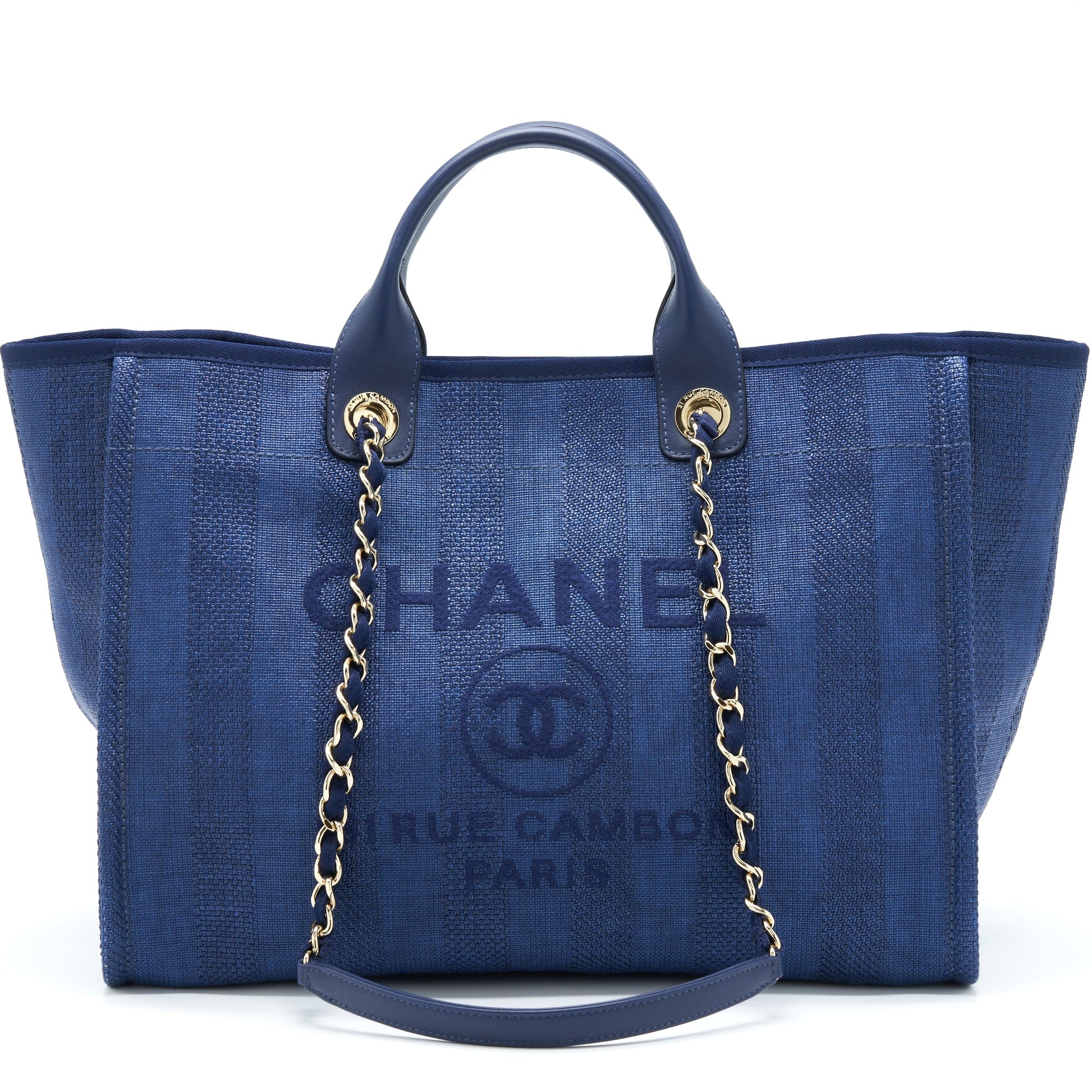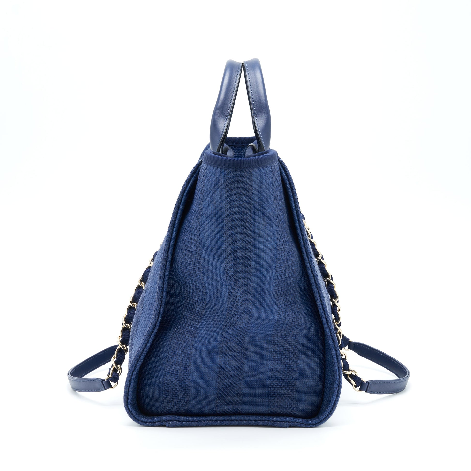 Chanel Deauville Tote Bag Canvas Dark Blue GHW