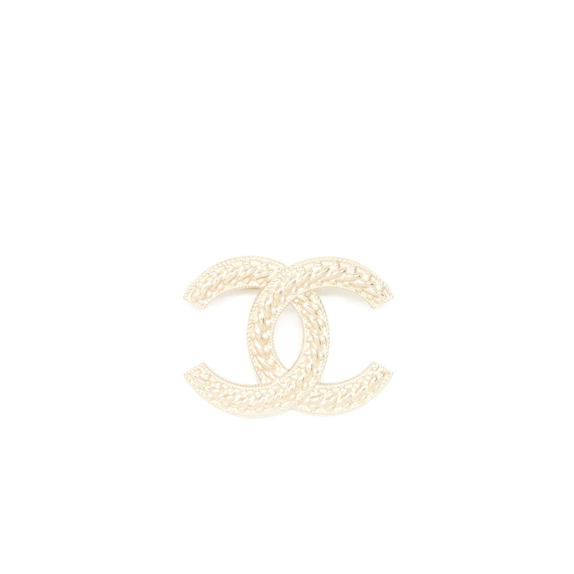Chanel Detailed CC Logo Brooch Brushed Silver Tone