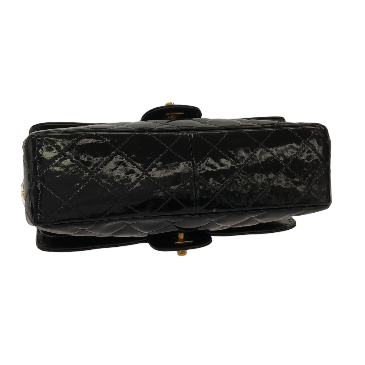 This CHANEL Double Face Matelasse Shoulder Bag in black patent leather is a statement piece for any fashion lover.