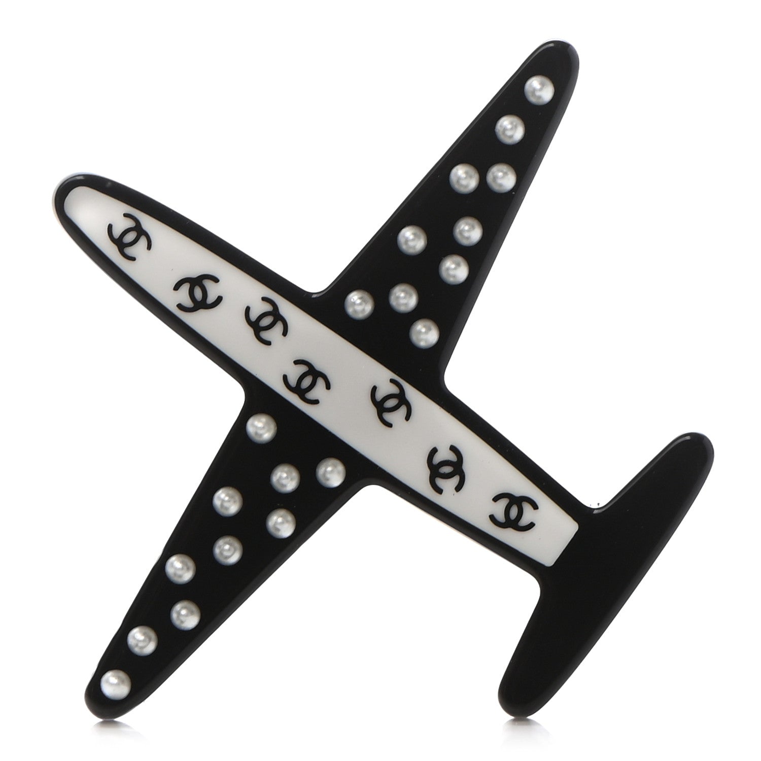 CHANEL Faux Pearl & Resin CC Airplane Brooch