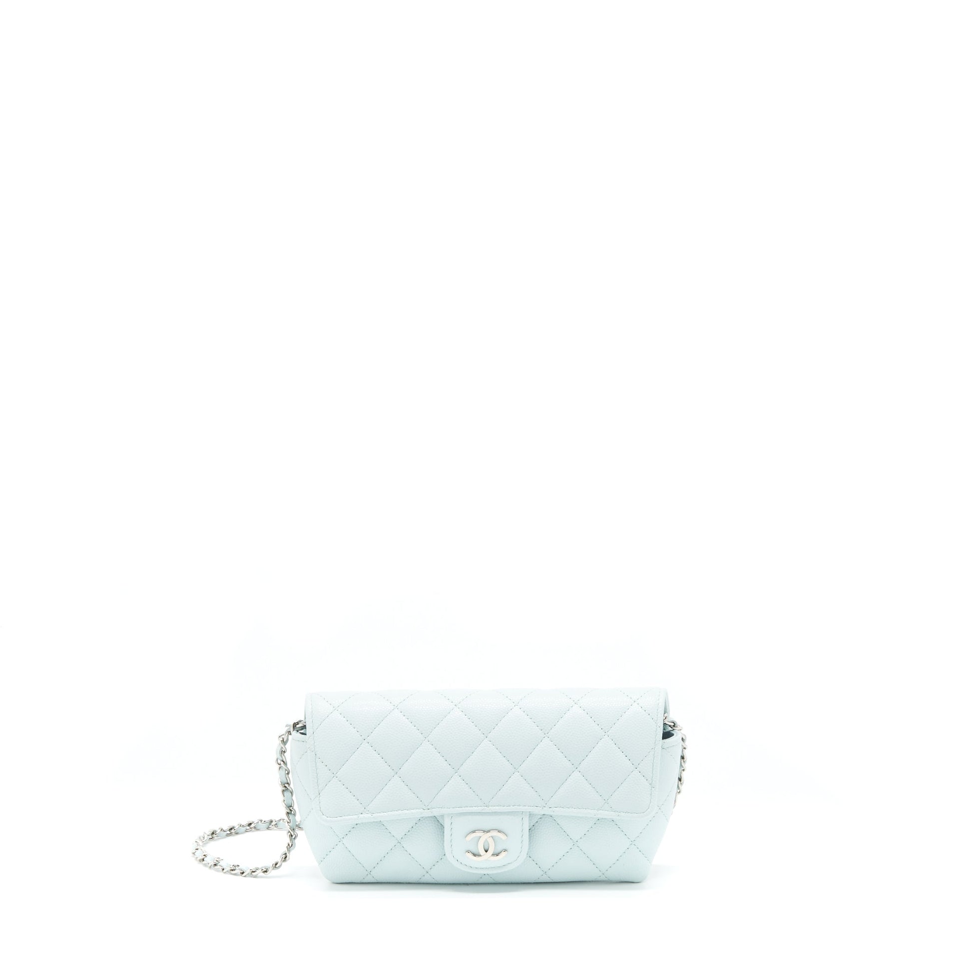 Chanel Glasses Case With Chain Caviar Light Blue SHW