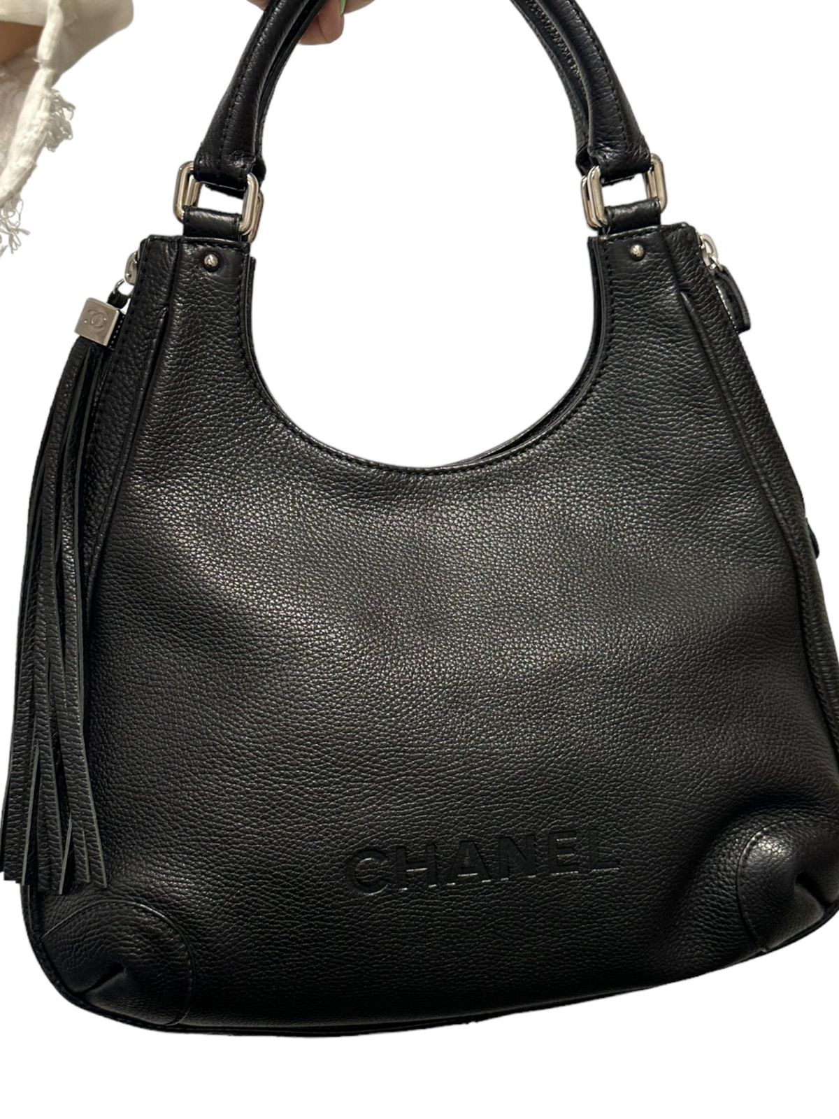 Experience luxury and style with the CHANEL Hobo Shoulder Bag. Made with high-quality materials, this bag is in good condition and ready to elevate any outfit. Perfect for the on-the-go fashionista, it offers both functionality and sophistication. Get ready to turn heads and make a statement with this must-have accessory!
