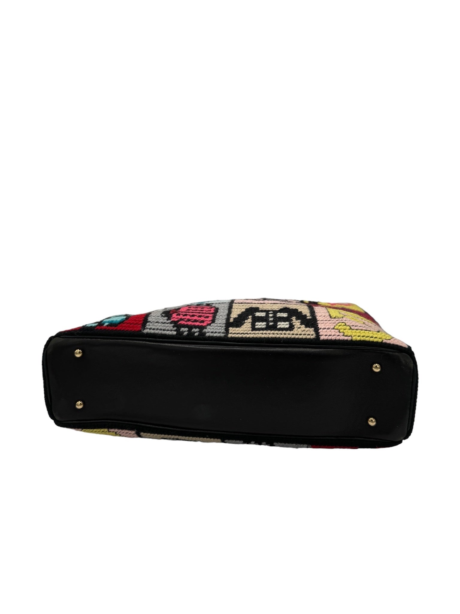 The CHANEL Icon Tote Bag features an overall design of black, light pink and multicolor wool satin lambskin which make it a unique piece to add to your collection.