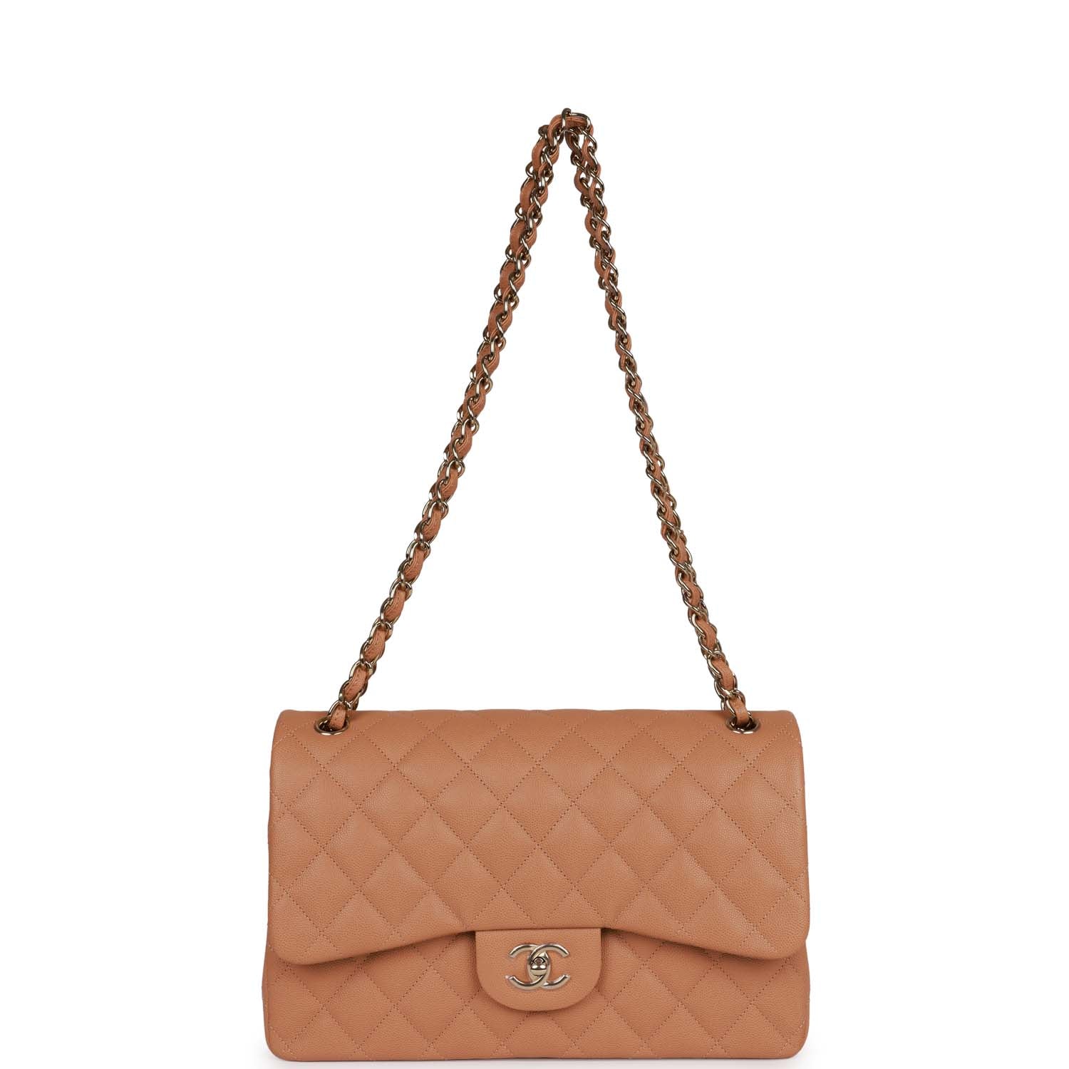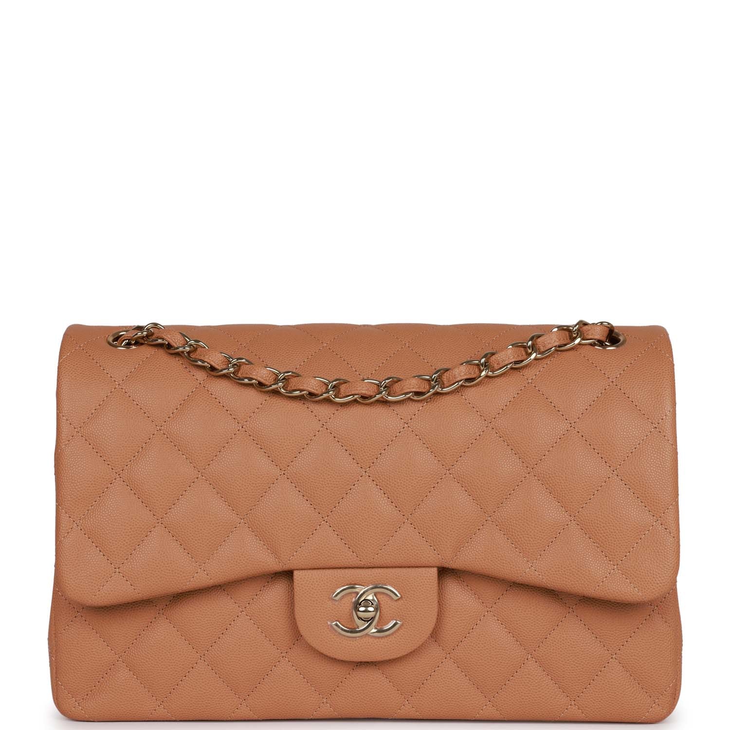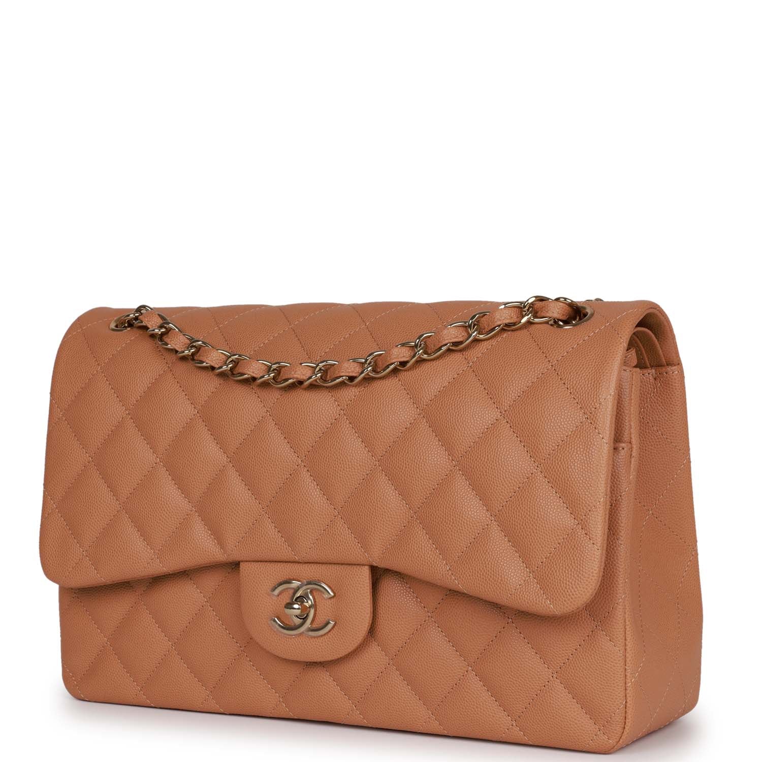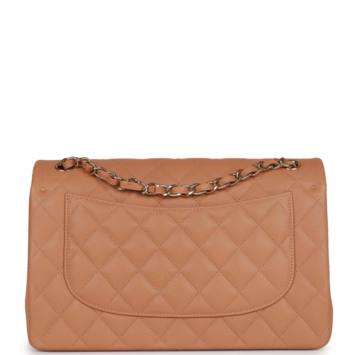 Chanel Jumbo Classic Double Flap Bag Dark Beige Caviar Gold Hardware