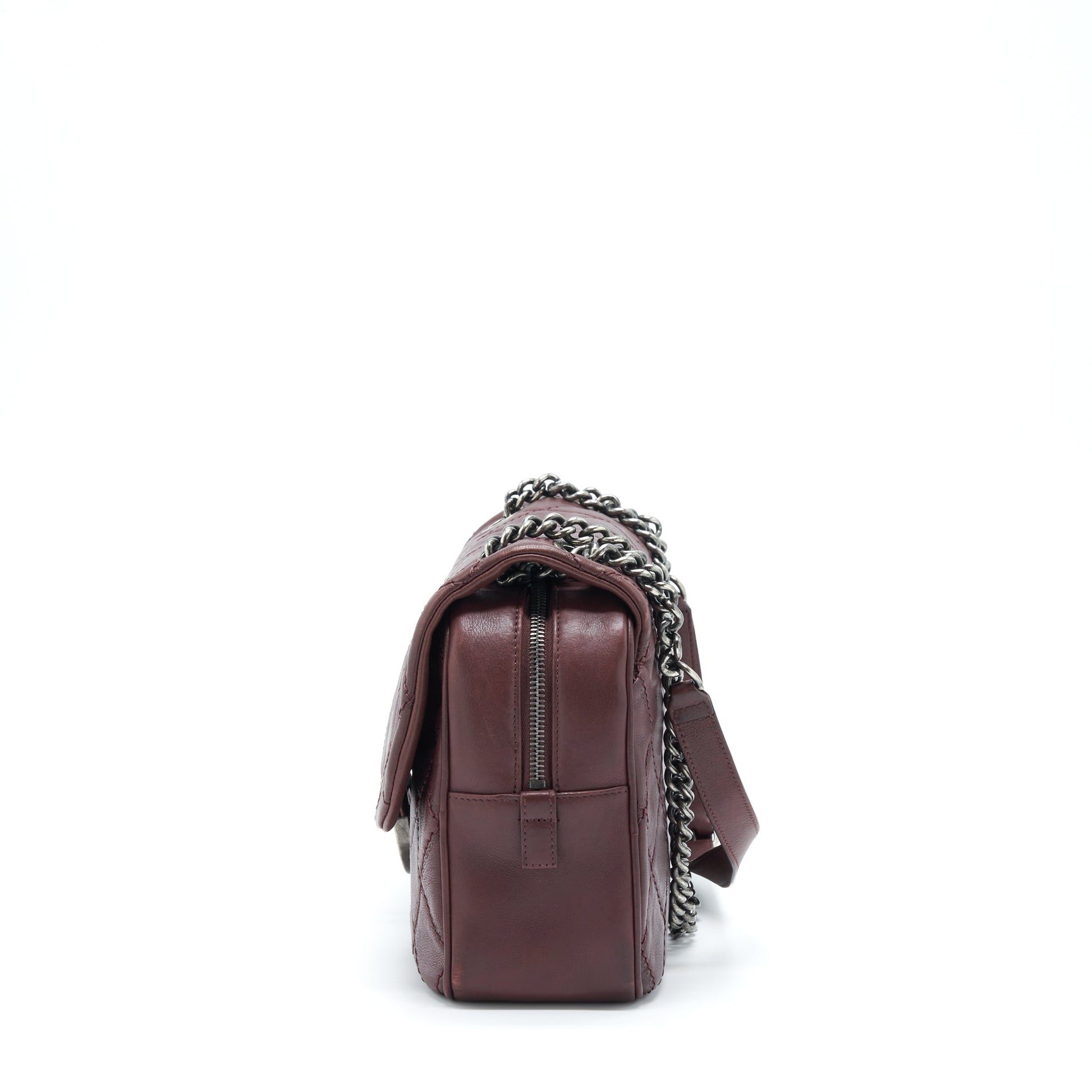 Chanel Jumbo Quilted Flap Bag Calfskin Burgundy Ruthenium Hardware