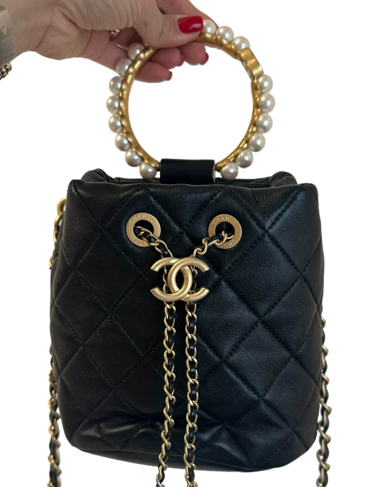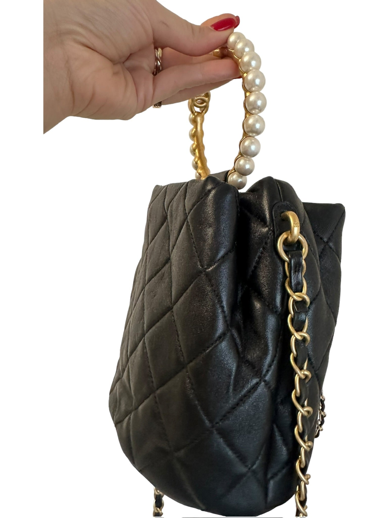 CHANEL - Lambskin Quilted Pearl Crush Drwastring Bag