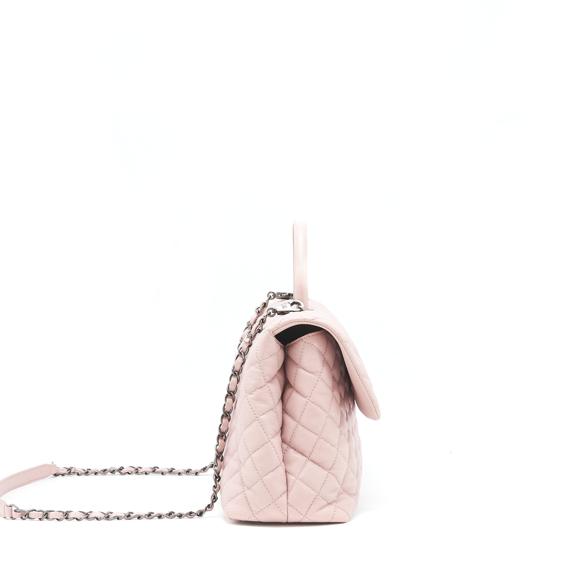 Chanel Large Coco Handle Flap Bag Caviar Light Pink ruthenium Hardware