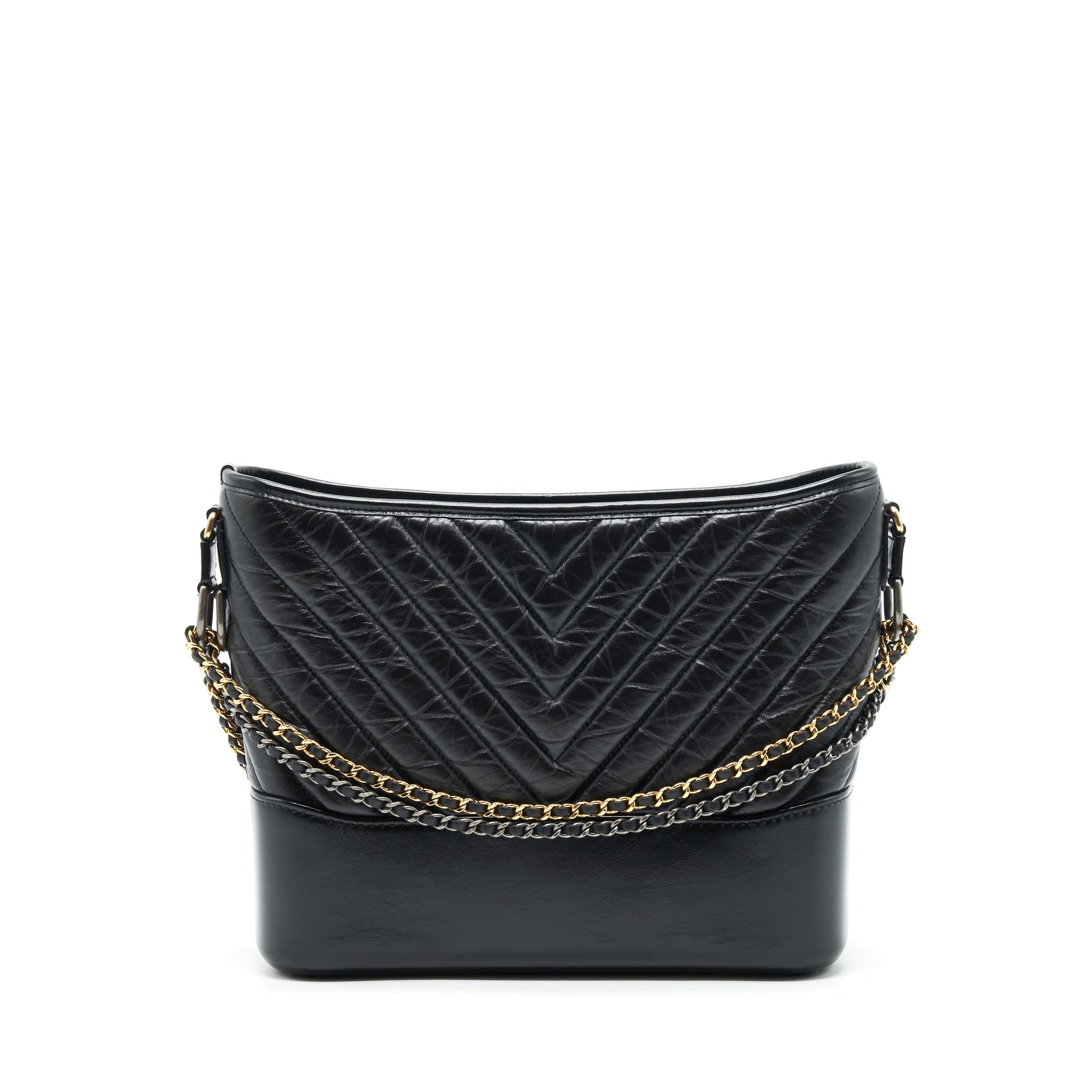 Chanel Large Gabrielle Hobo Bag Chevron Calfskin Black With Gold/Sliver Hardware