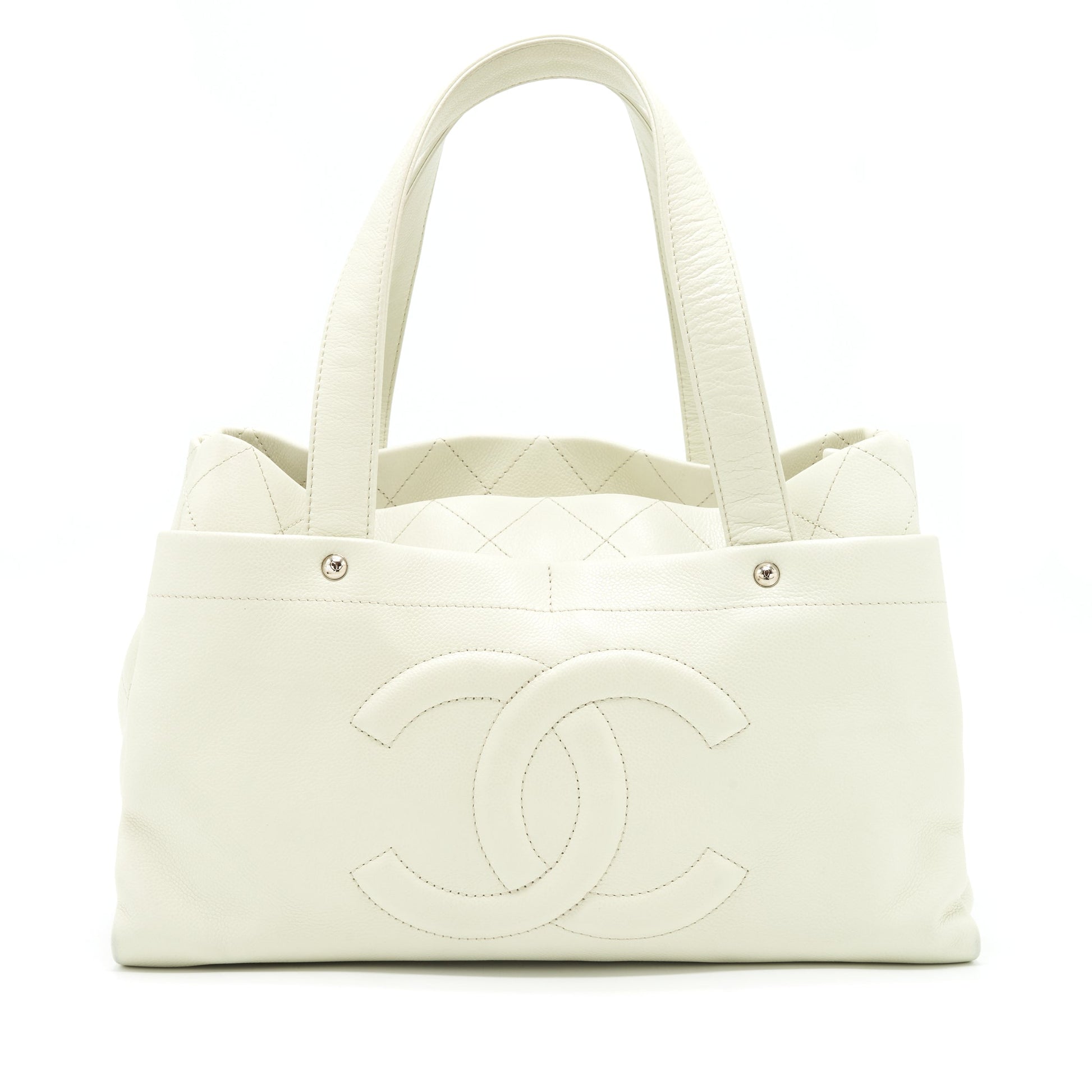 Chanel Large Shopping Tote Bag Caviar Ivory SHW
