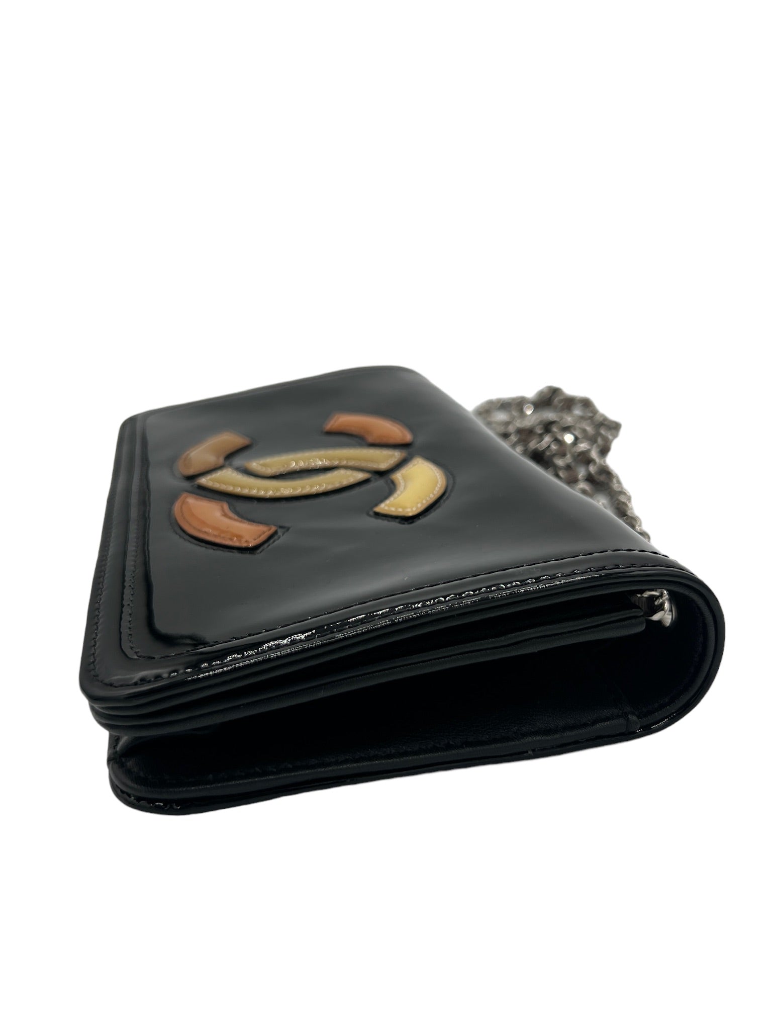 This CHANEL Lipstick Flap Bag is a chic and stylish accessory perfect for any occasion. The black patent leather fabrication adds a touch of glamour to your outfit, while the silver toned hardware complements the overall design.