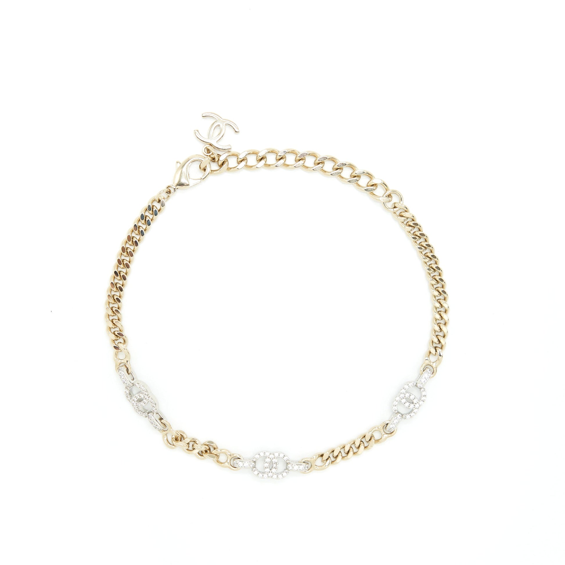 Chanel Logo Chain Choker / Double Chain Chocker Light Gold Tone