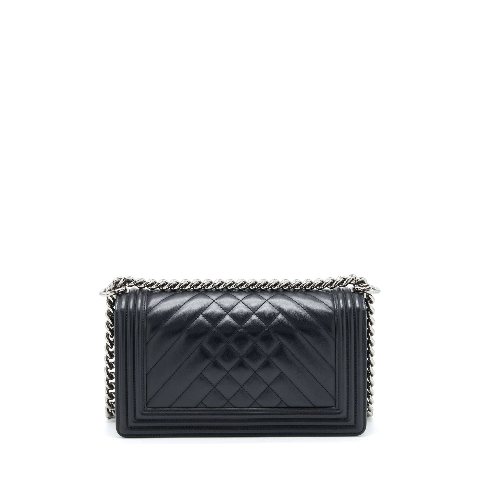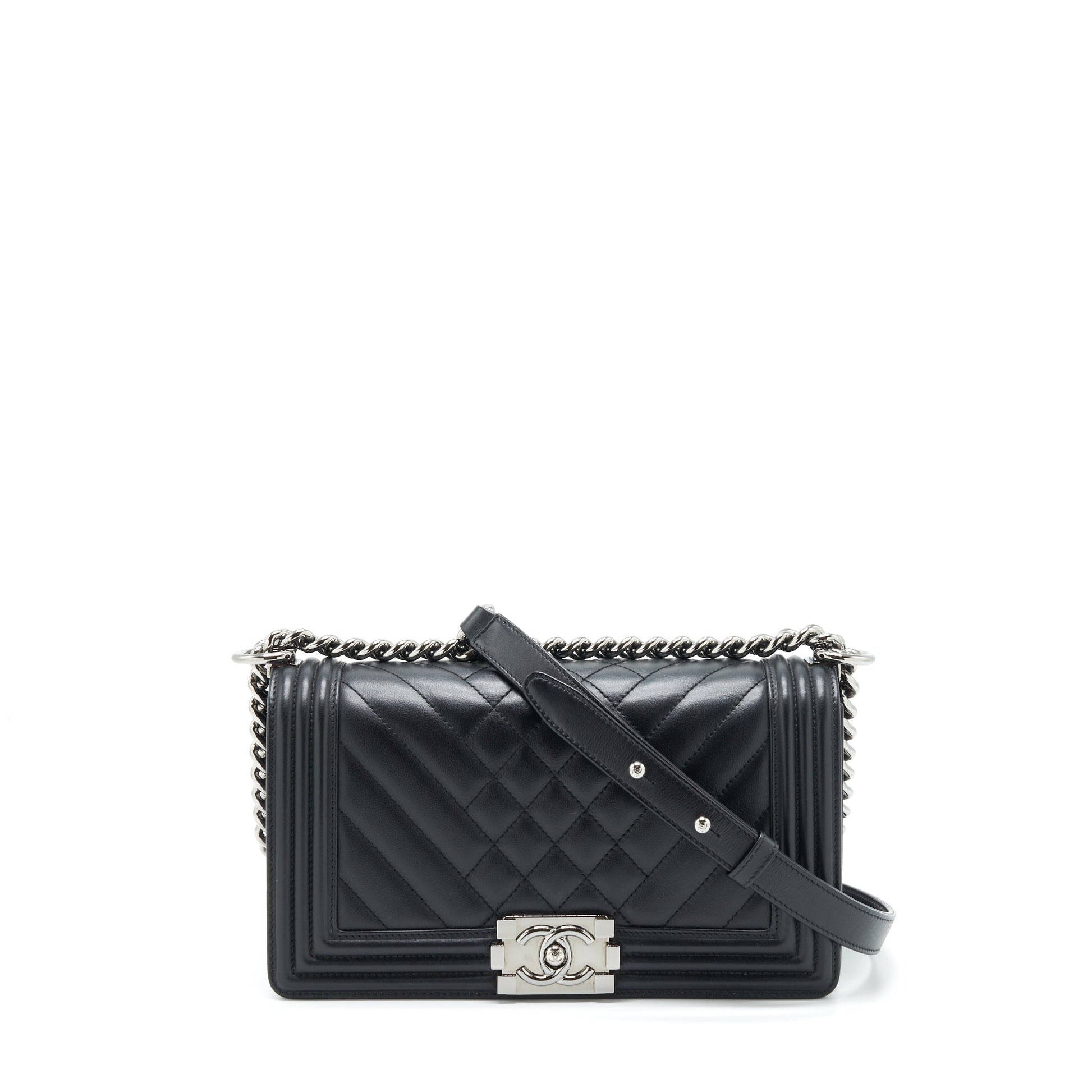 Chanel Medium Boy Bag Quilted And Chevron Calfskin Black SHW