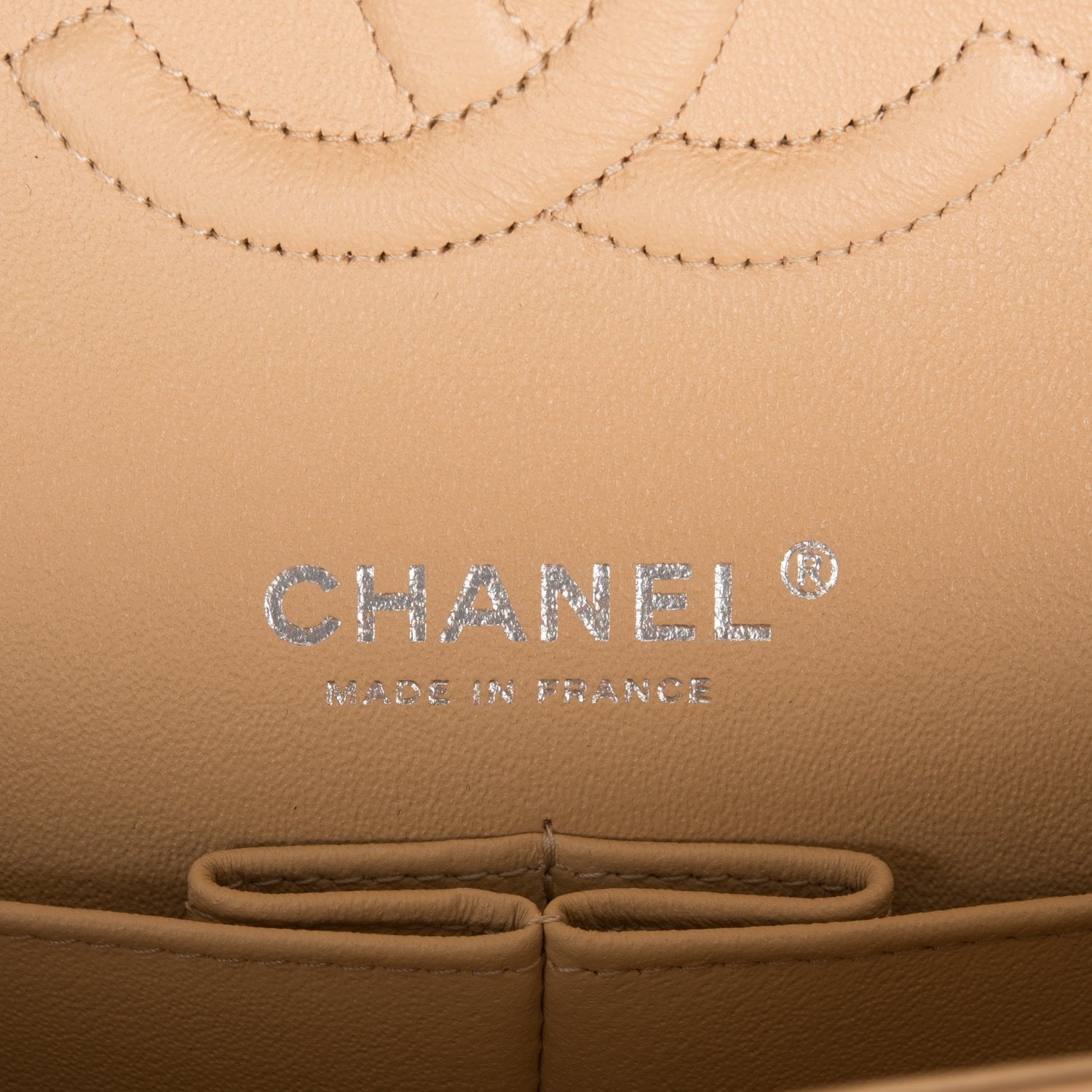 Chanel Medium Classic Double Flap Bag Beige Quilted Caviar Silver Hardware