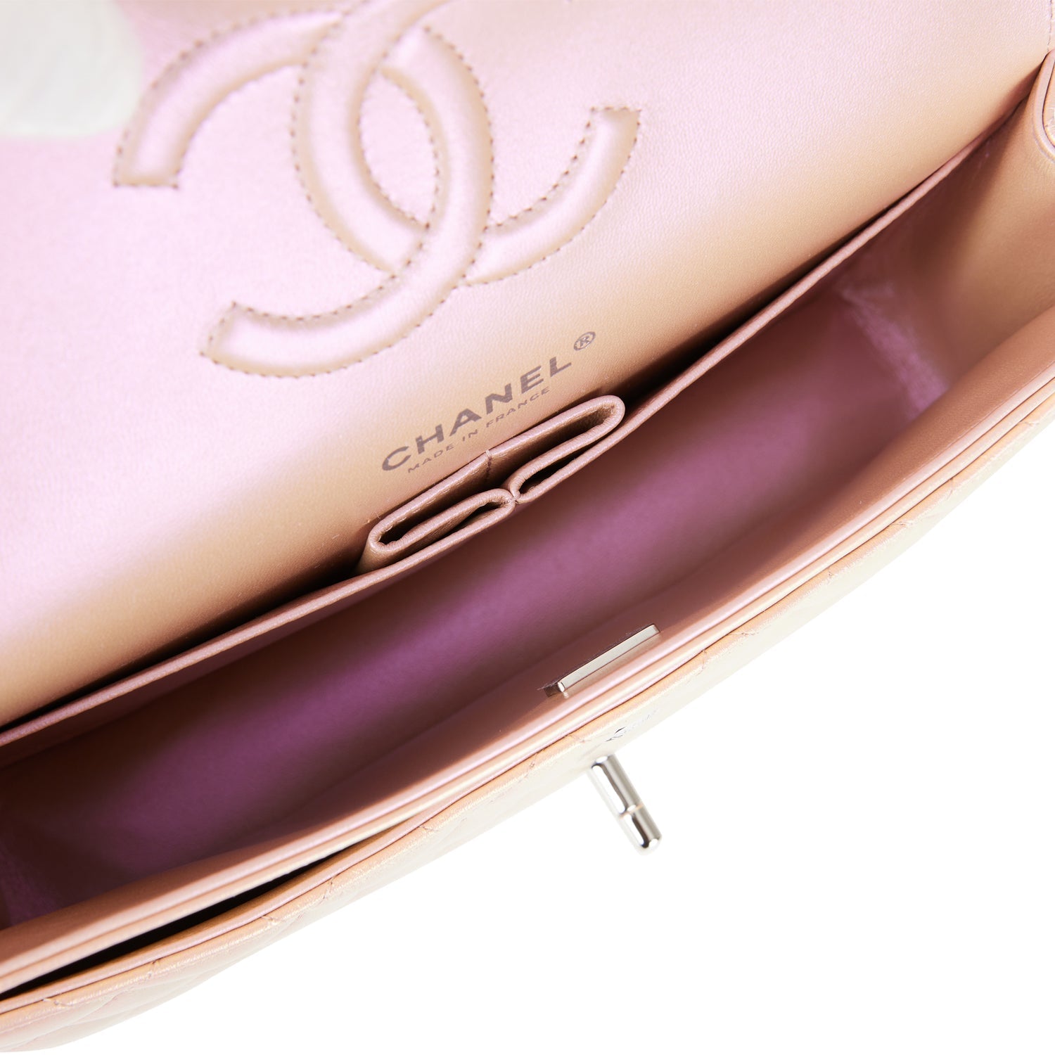 Chanel Medium Classic Double Flap Bag Pink Iridescent Lambskin Silver Hardware