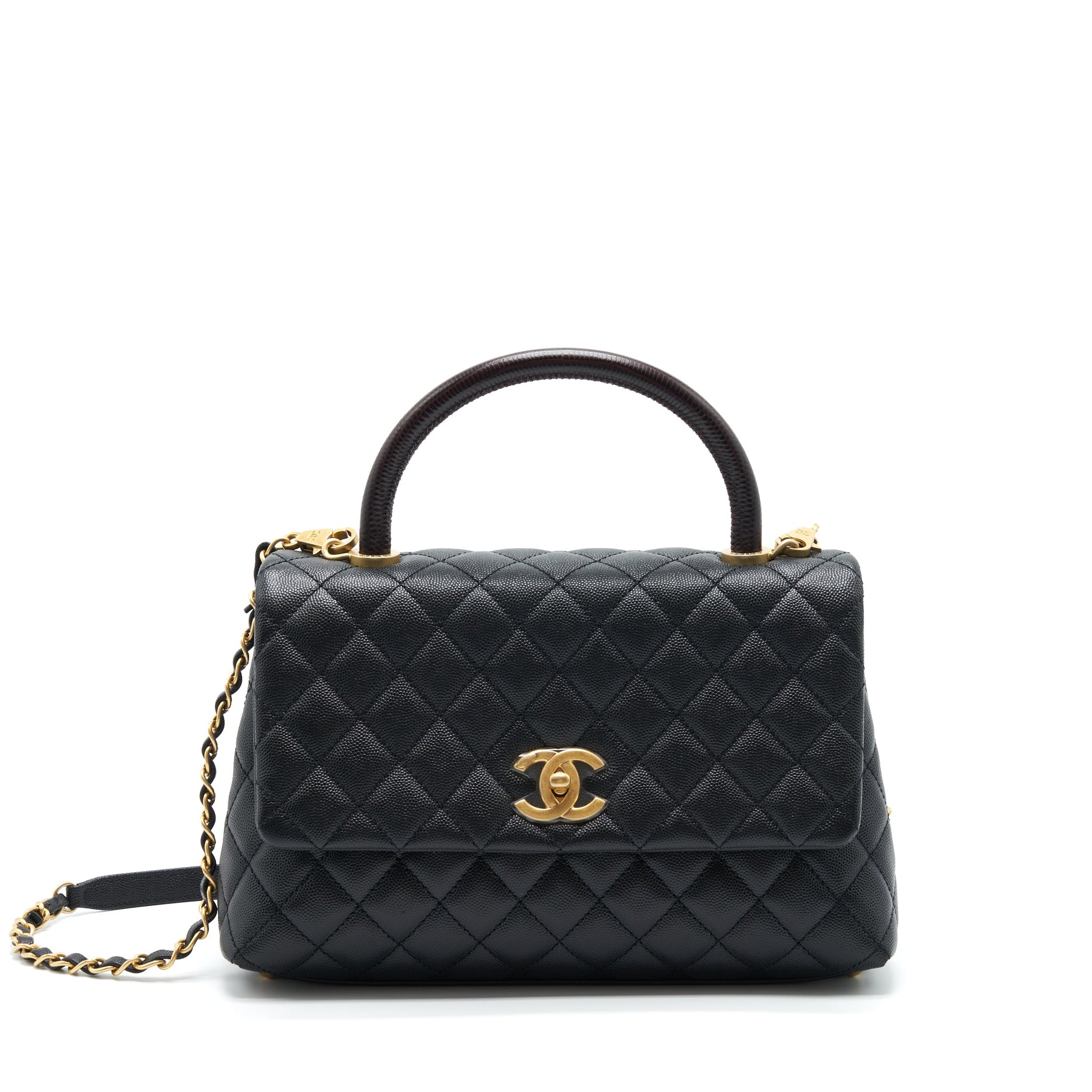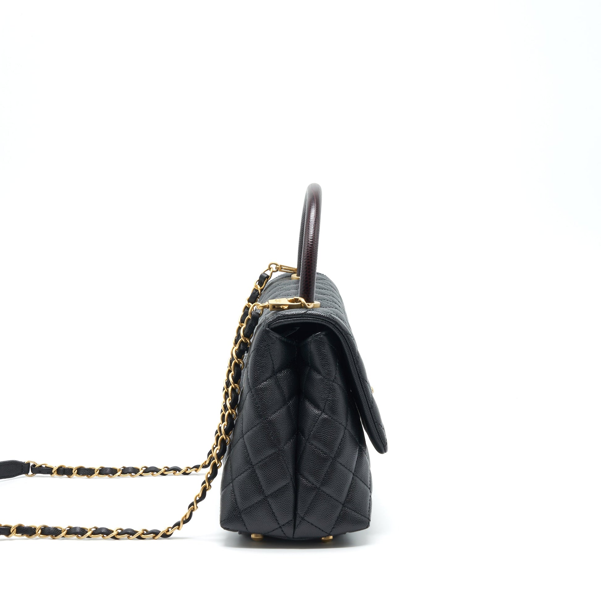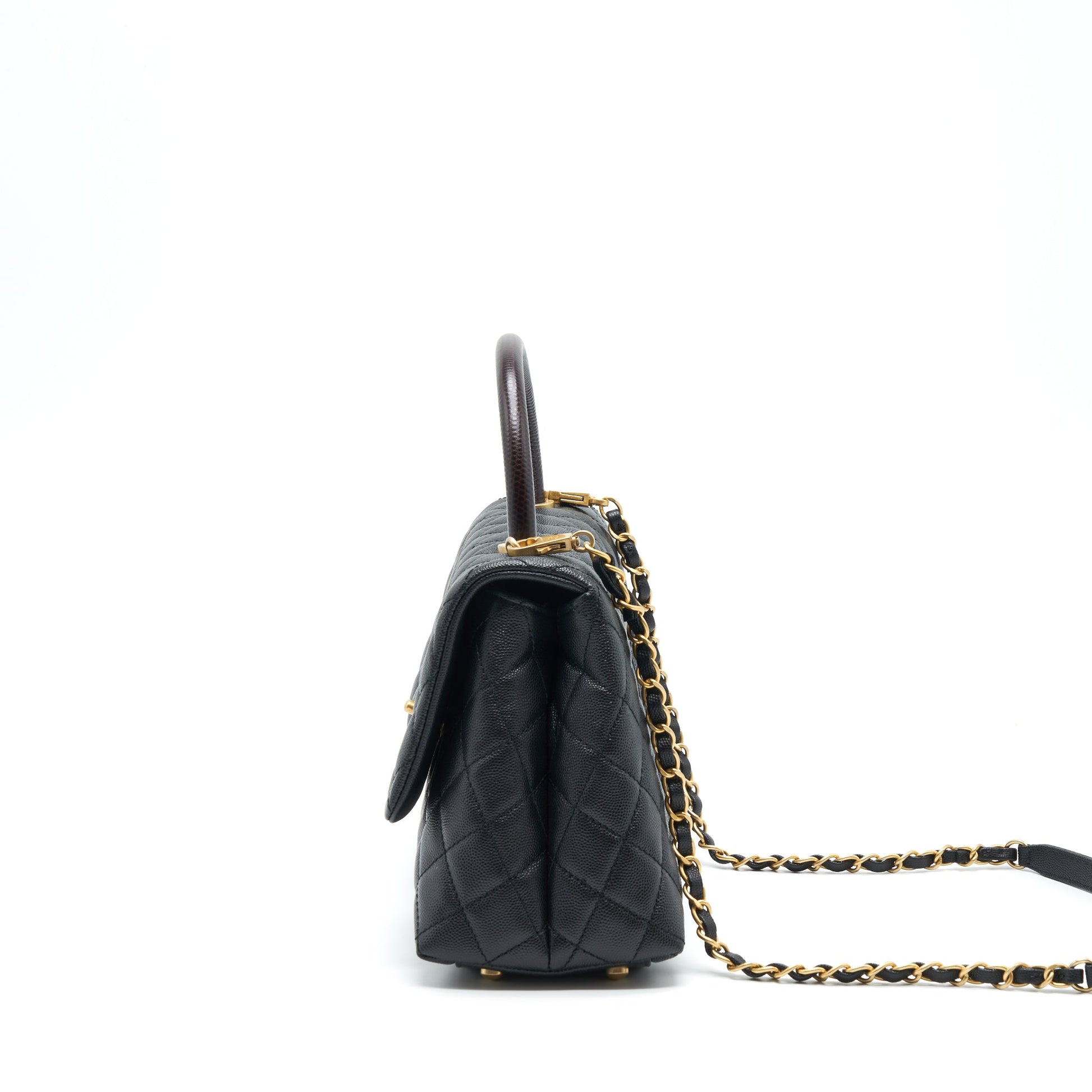 Chanel Medium Coco Handle With Lizard Embossed Handle Caviar Black GHW
