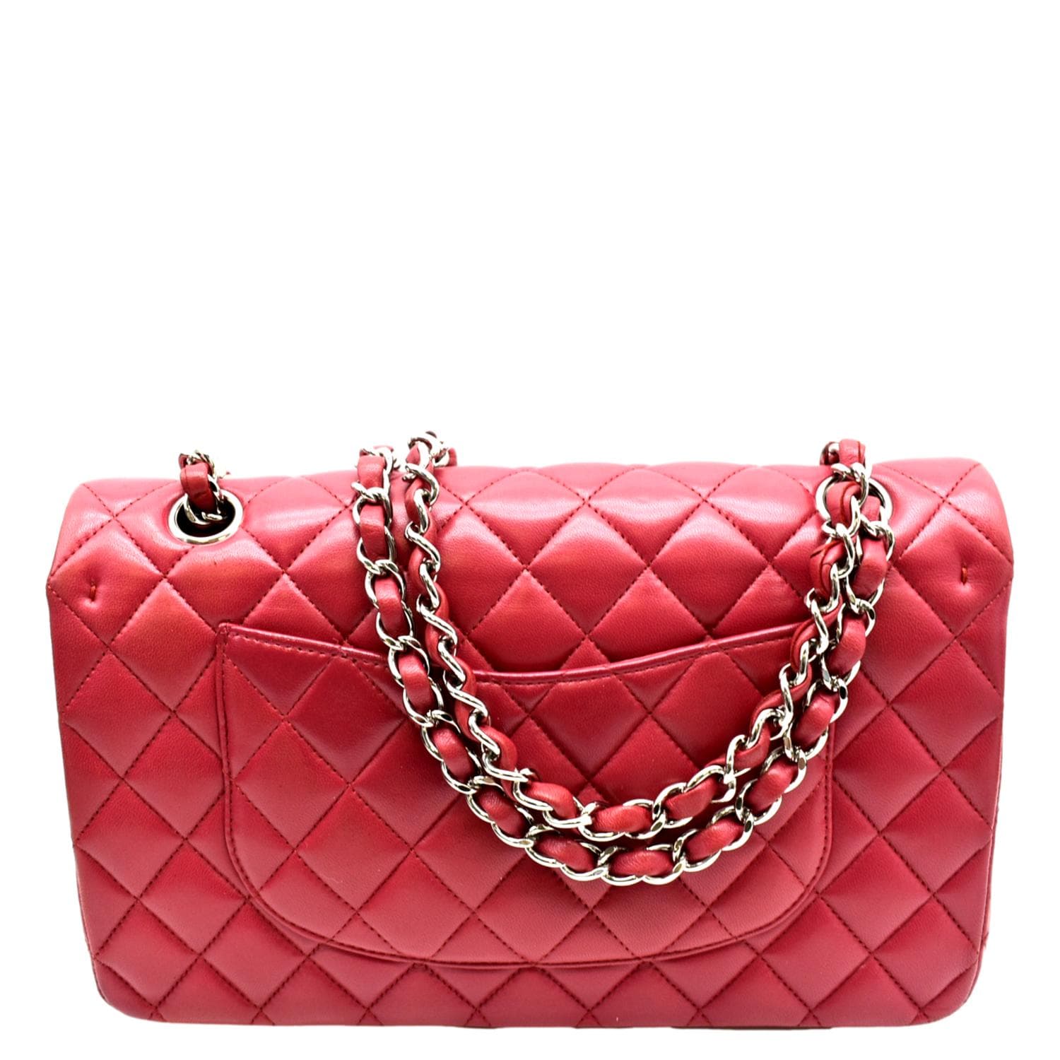 CHANEL Classic Medium Double Flap Quilted Leather Shoulder Bag Red