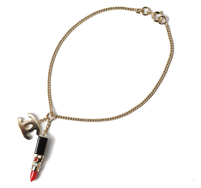 Chanel Bangle/Bracelet Coco Mark Lipstick Rhinestone Red Multi Gold