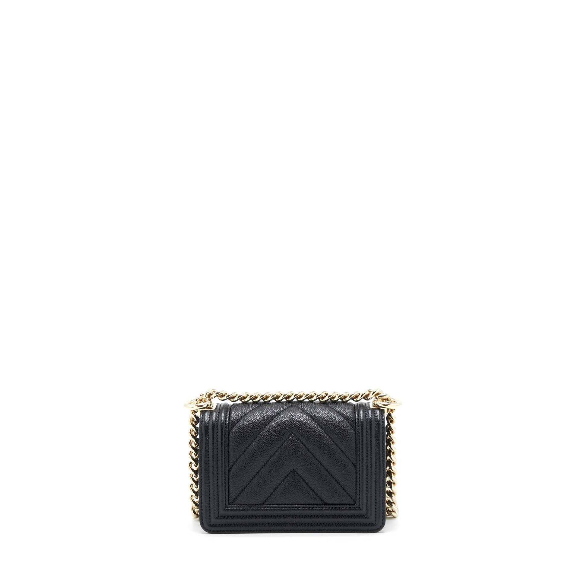 Chanel Mini Chevron Boy Bag Grained Calfskin Black LGHW