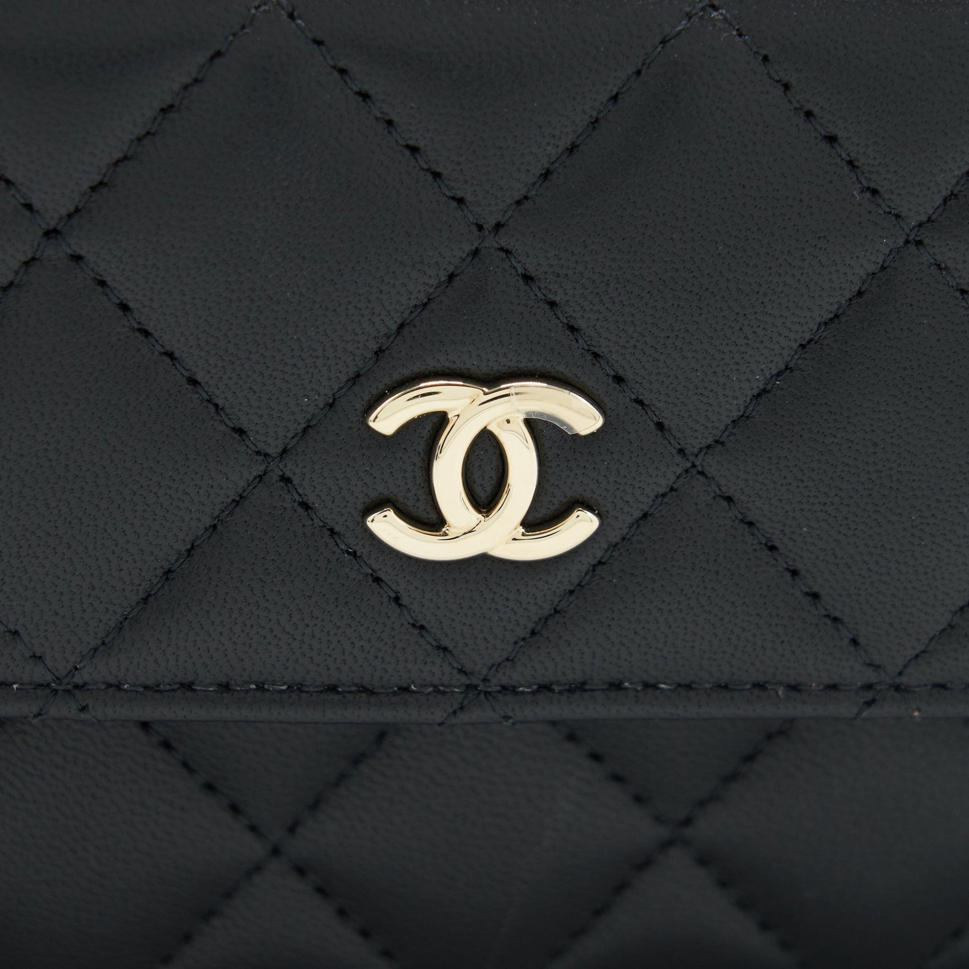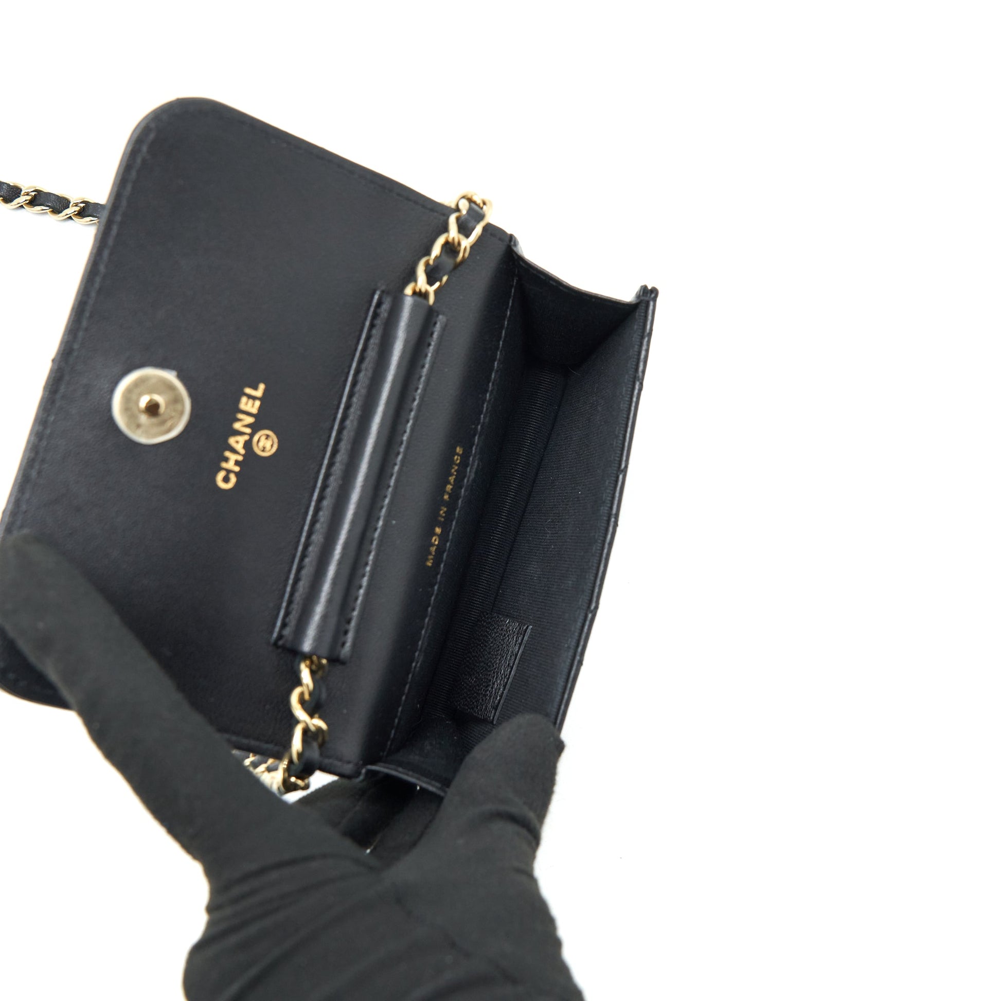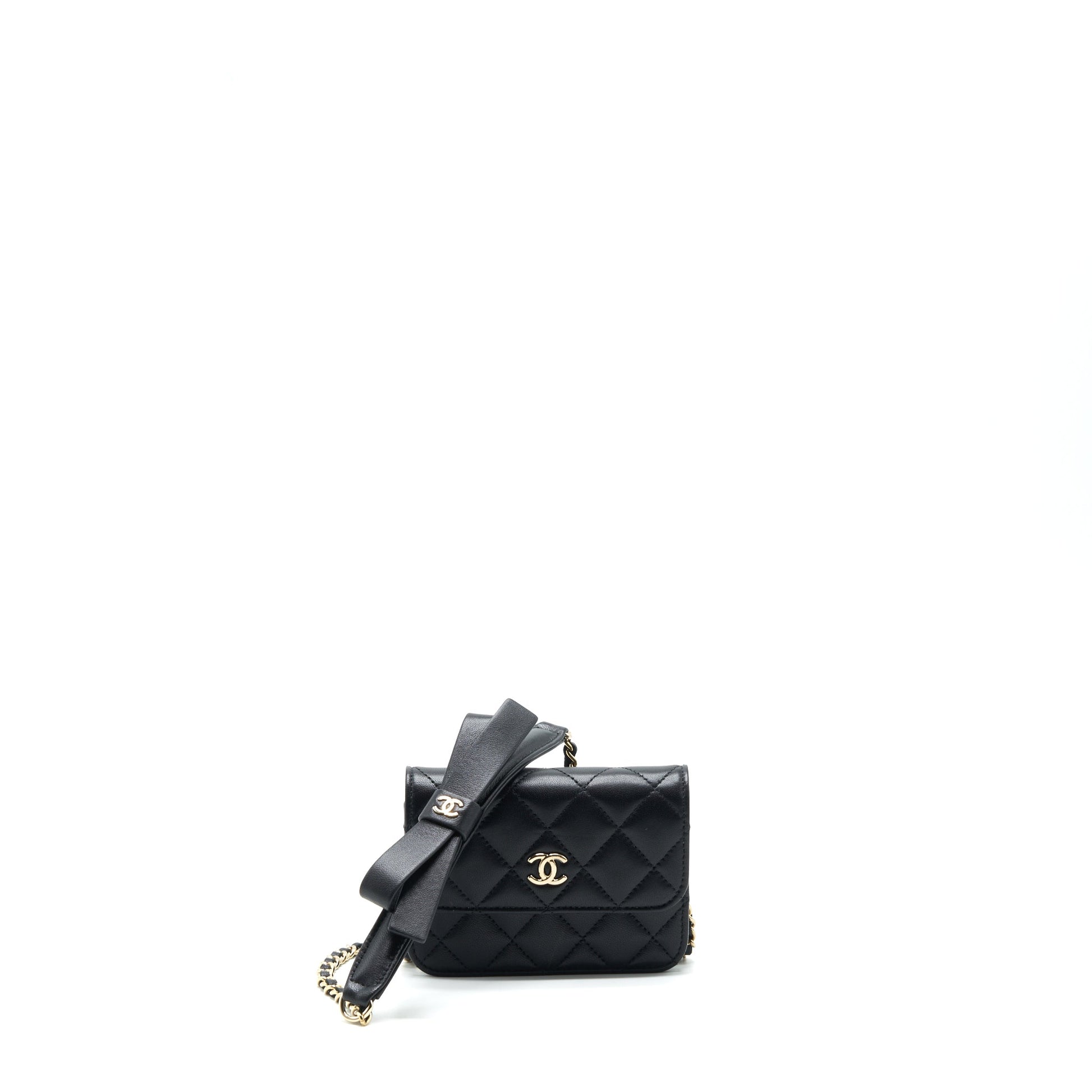 Chanel Mini Flap Card Holder Ribbon Chain Lambskin Black LGHW