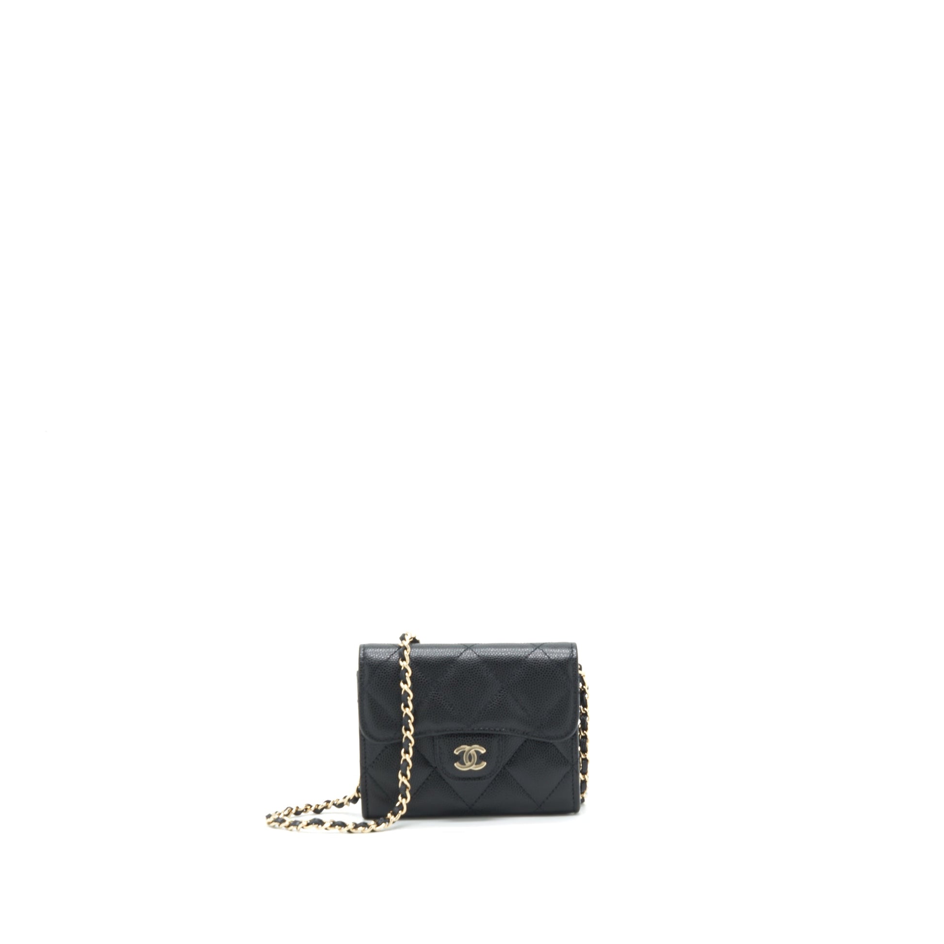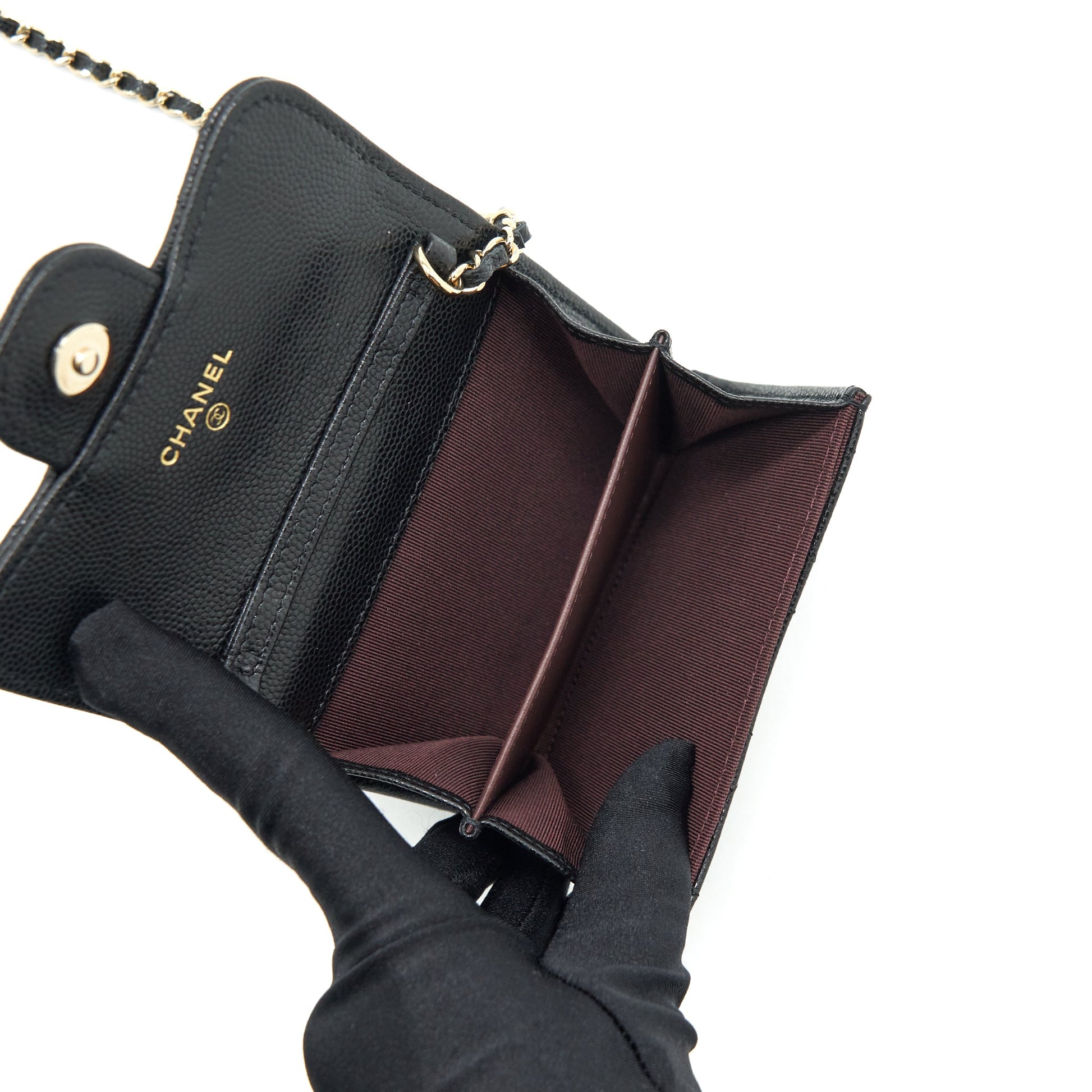 Chanel Mini Flap Card Holder With Chain Caviar Black LGHW