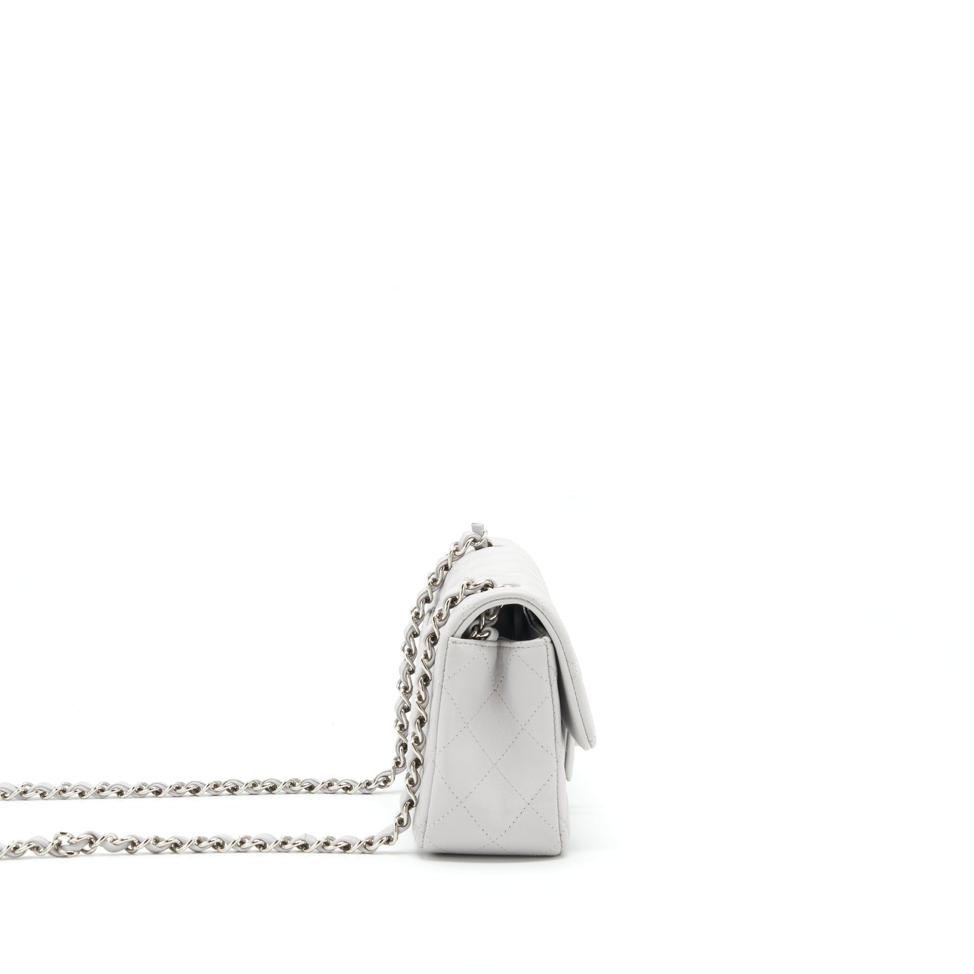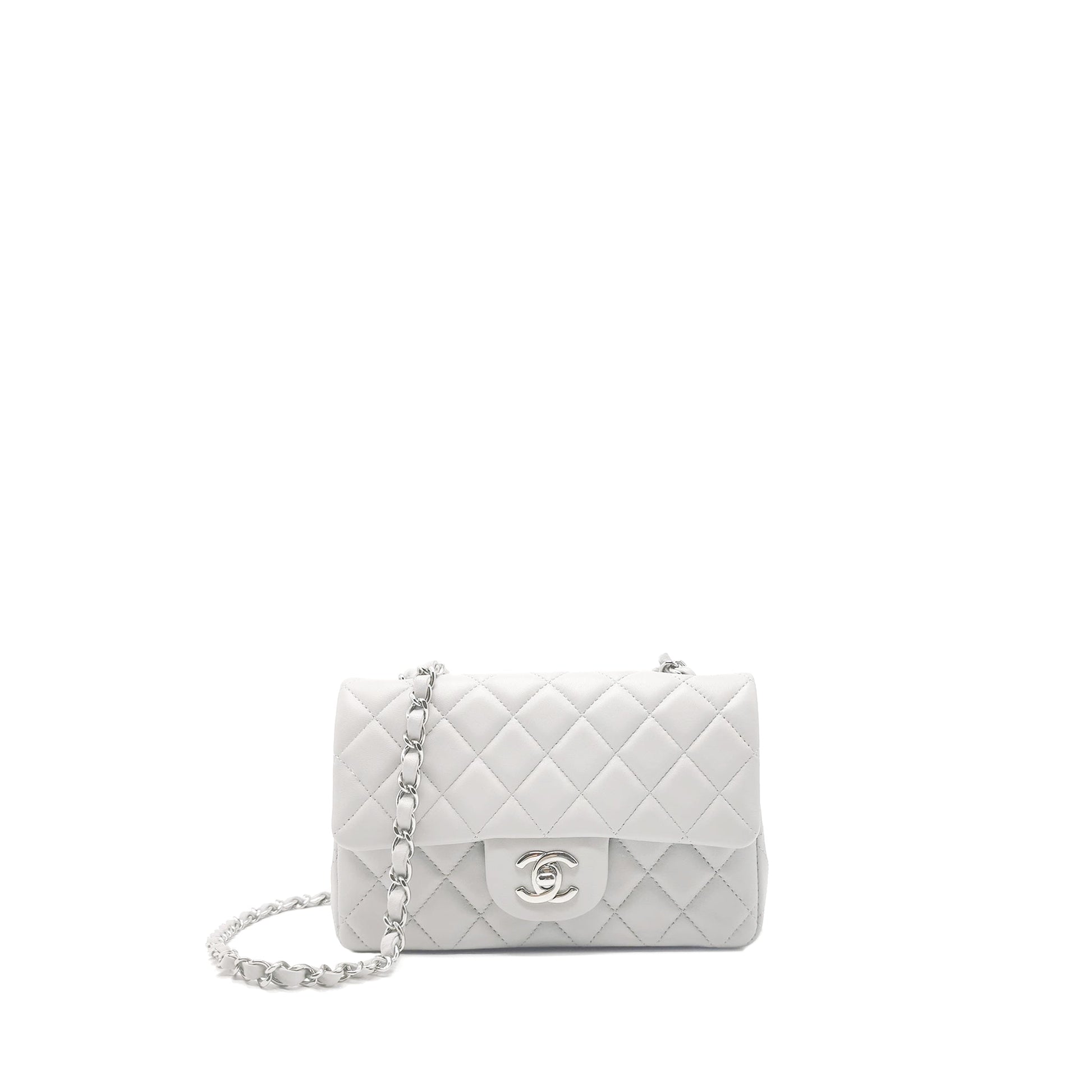 Chanel Mini Rectangular Flap Bag Lambskin Light Grey SHW