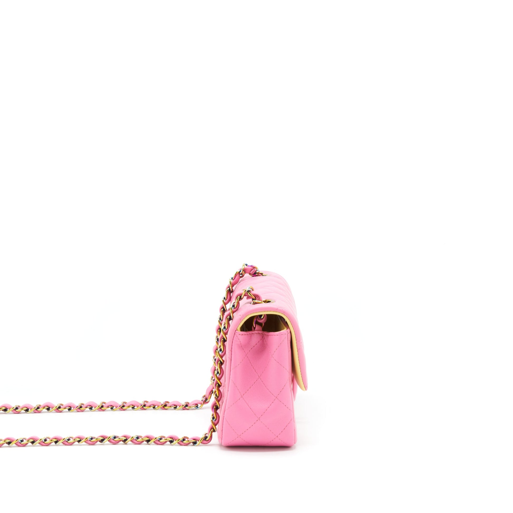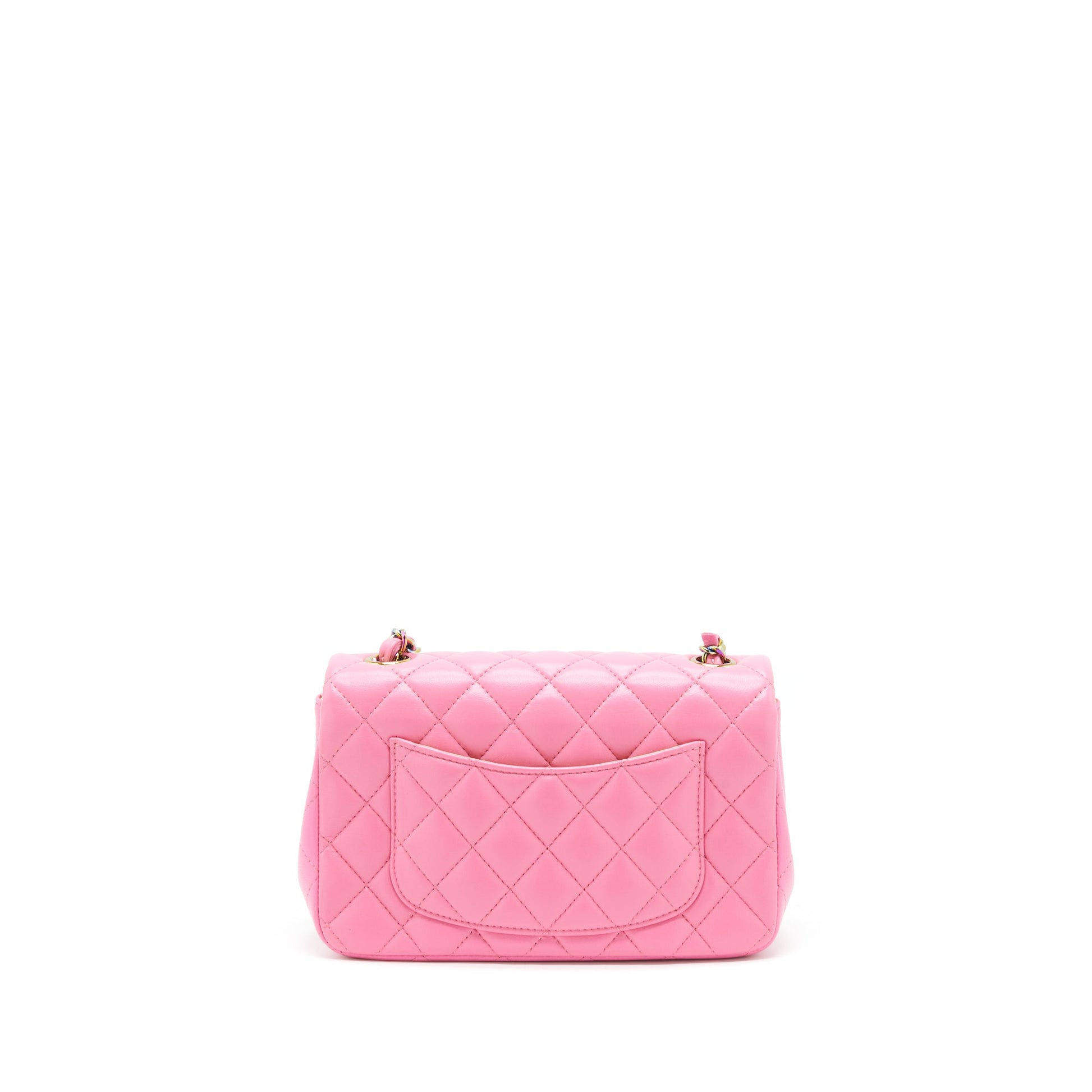 Chanel Mini Rectangular Flap Bag Lambskin Pink with Rainbow Hardware