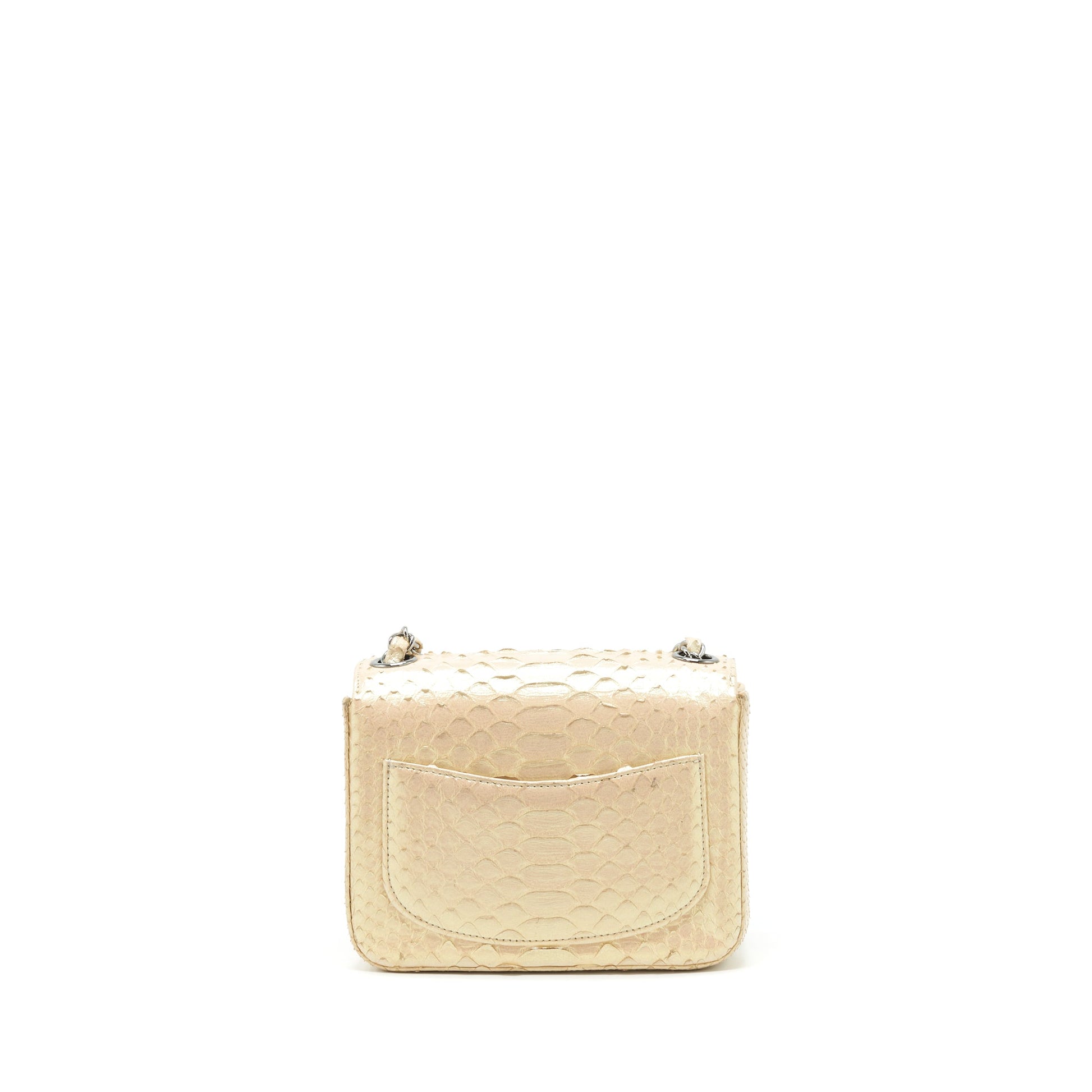 Chanel Mini Square Flap Bag Python Iridescent Light Beige SHW