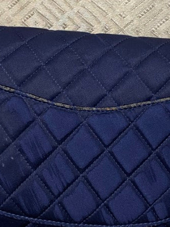 - Material: Navy Blue Quilted Satin, Fabric and Leather Trim