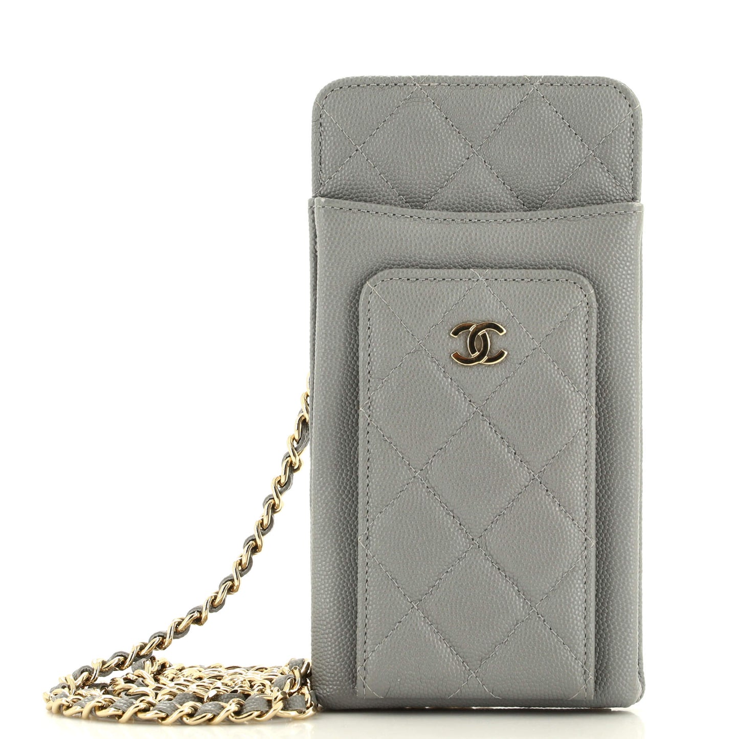 Chanel O Phone Holder Crossbody Bag Quilted Caviar