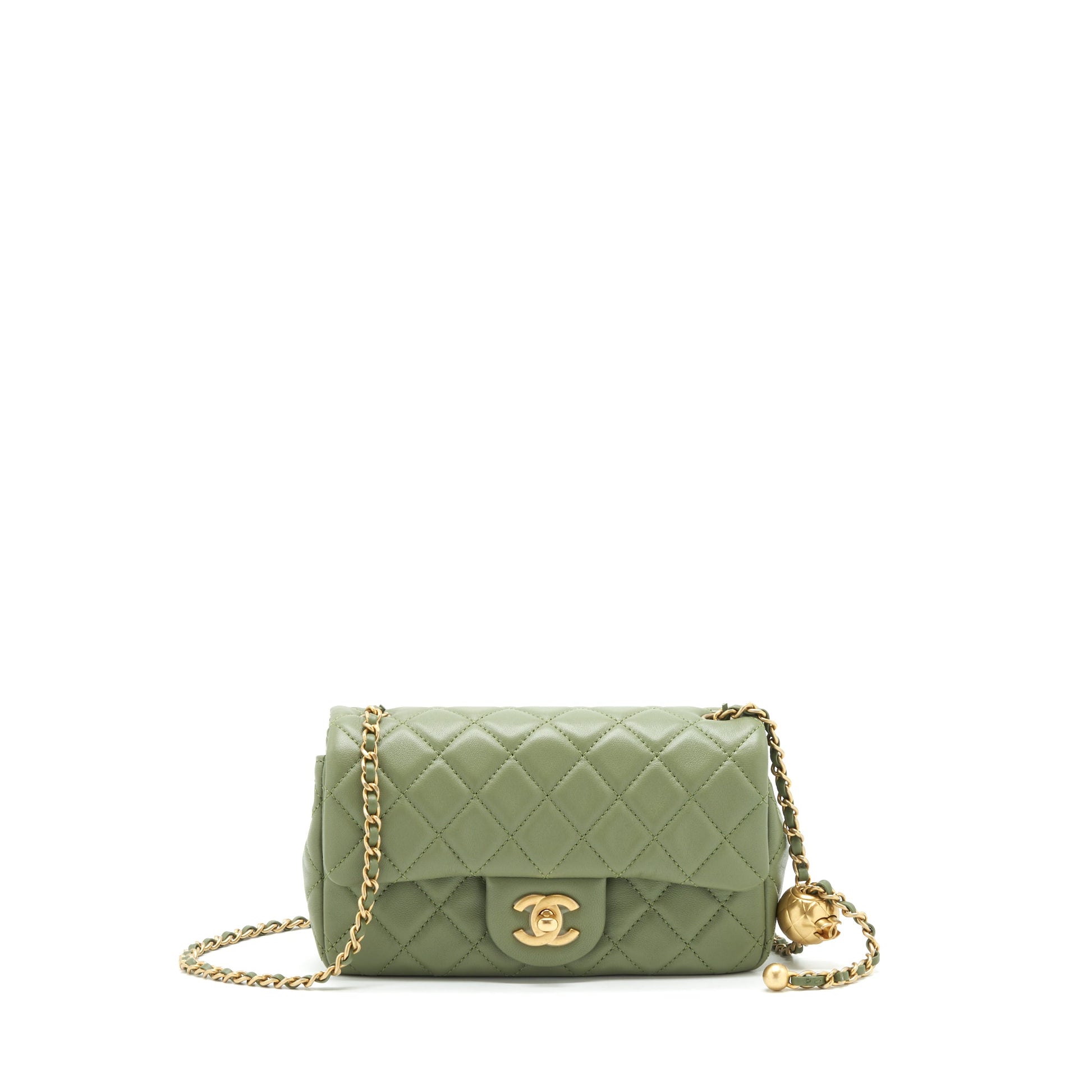 Chanel Pearl Crush Mini Rectangular Flap Bag 21B Lambskin Green GHW