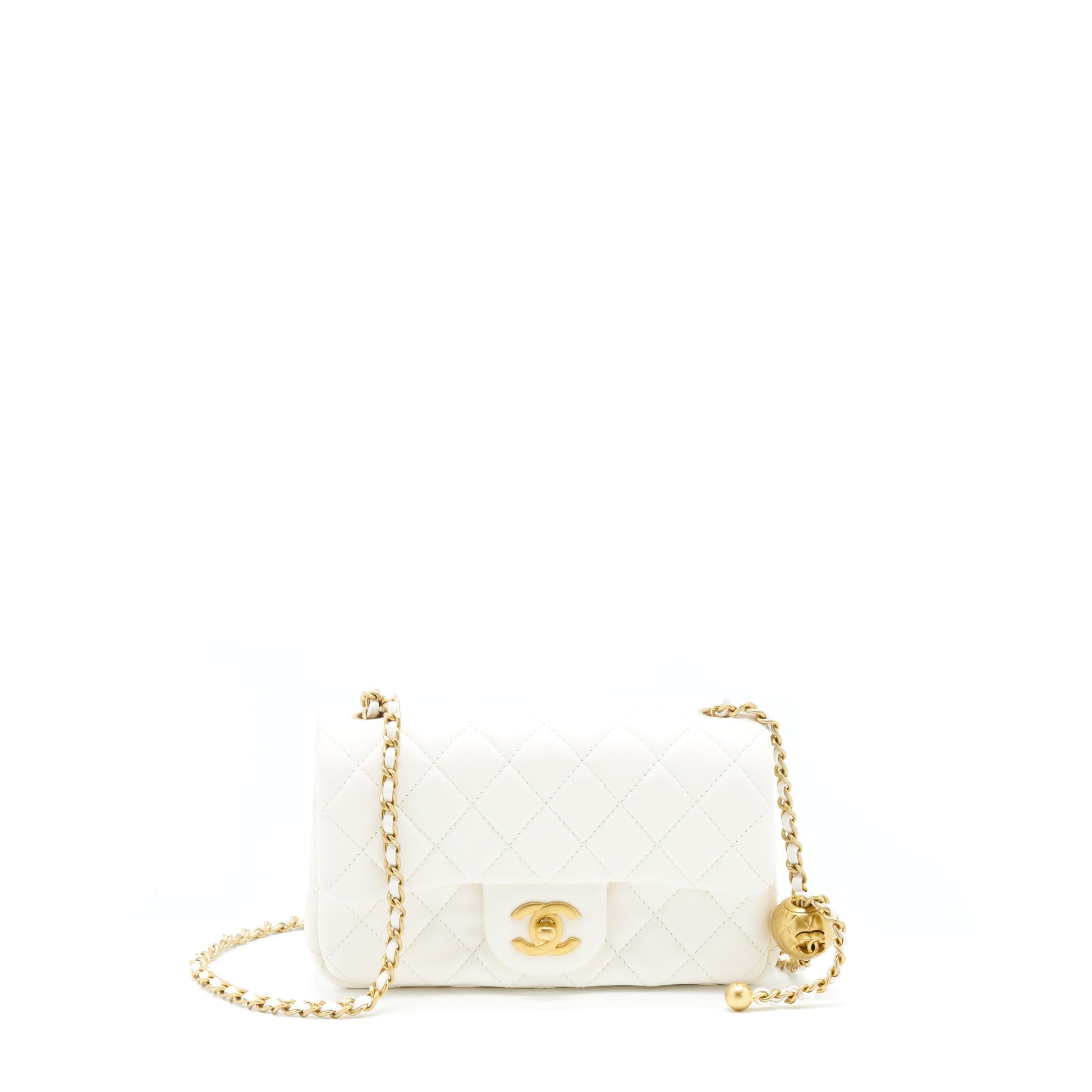 Chanel Pearl Crush Mini Rectangular Flap Bag Lambskin White GHW (Microchip)