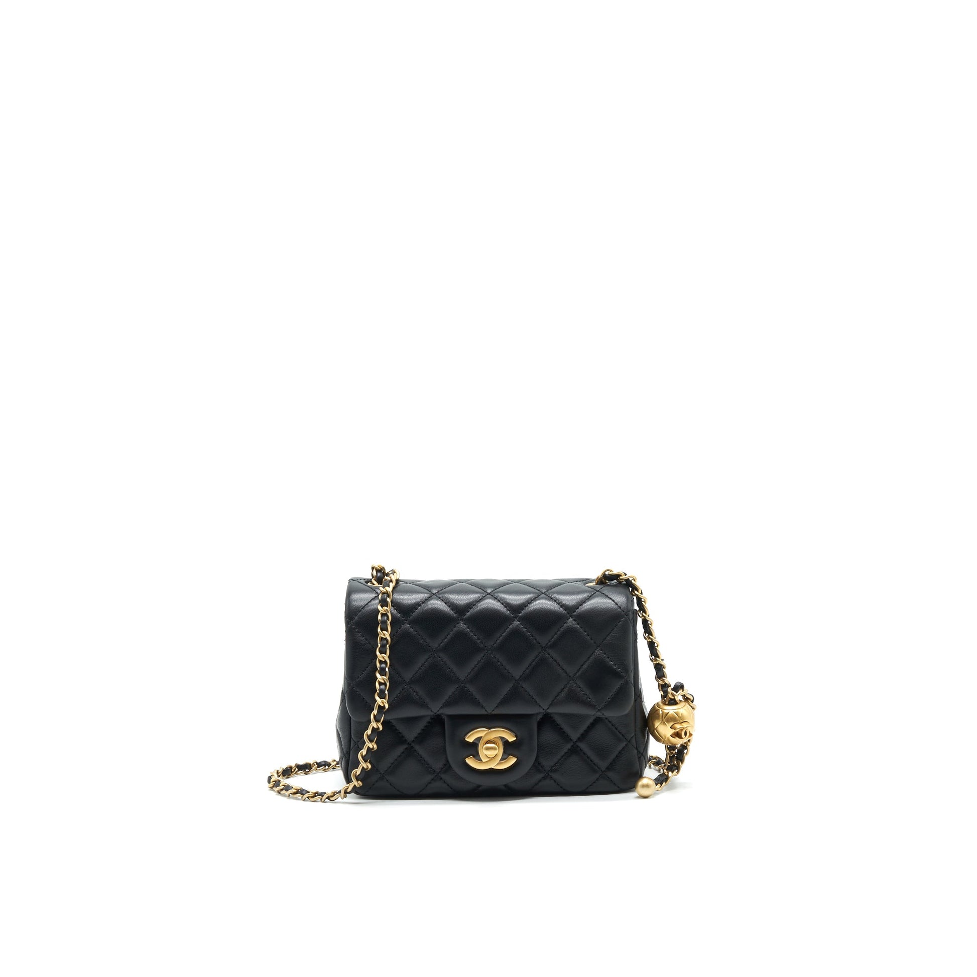 Chanel Pearl Crush Mini Square Flap Bag Lambskin Black GHW