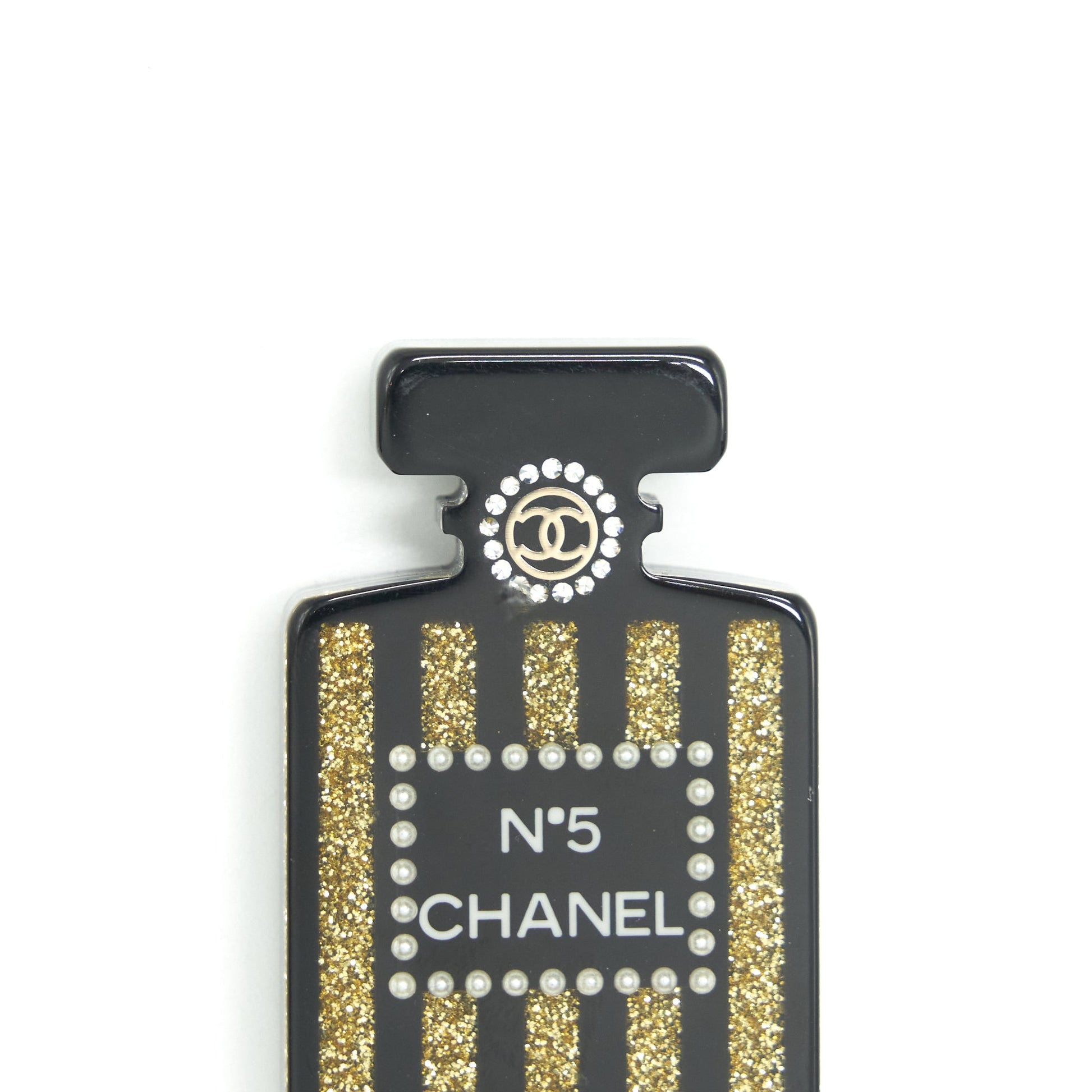 Chanel Perfume Bottle Brooch Resin With Glitters And Pearls Black/Gold