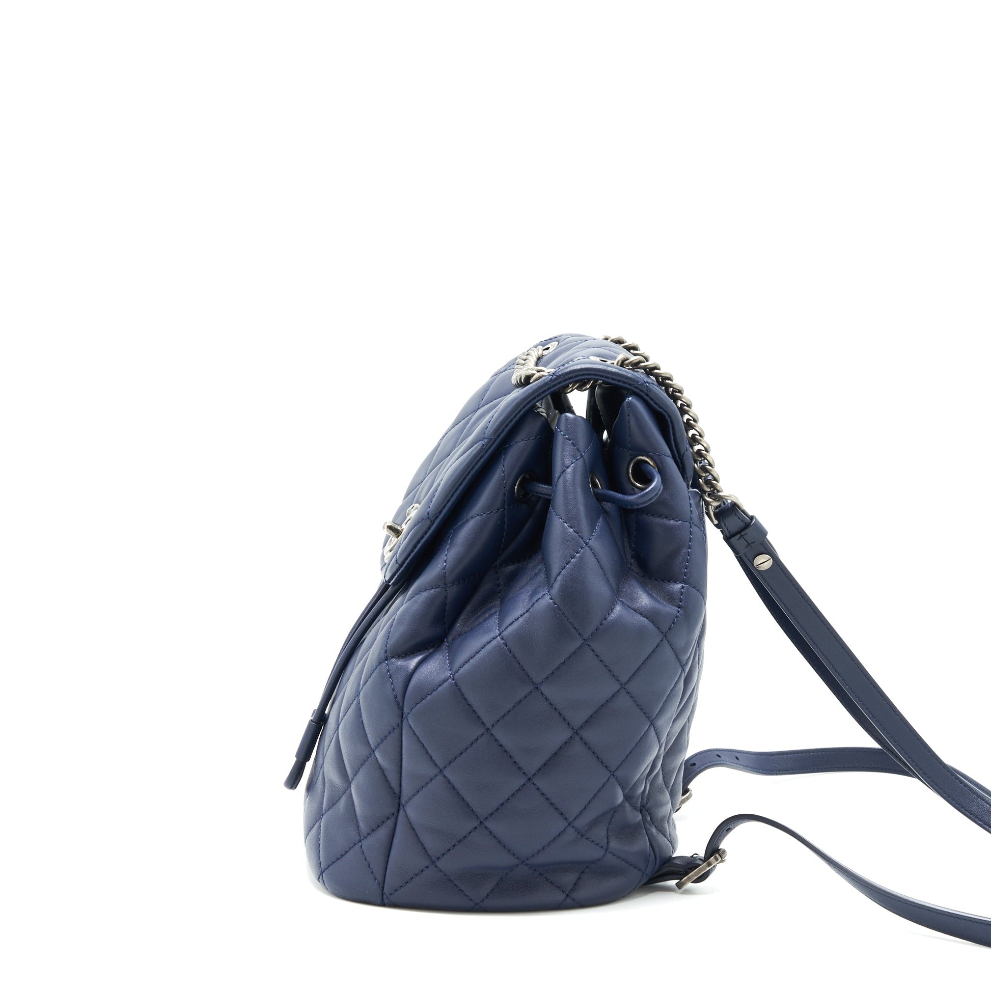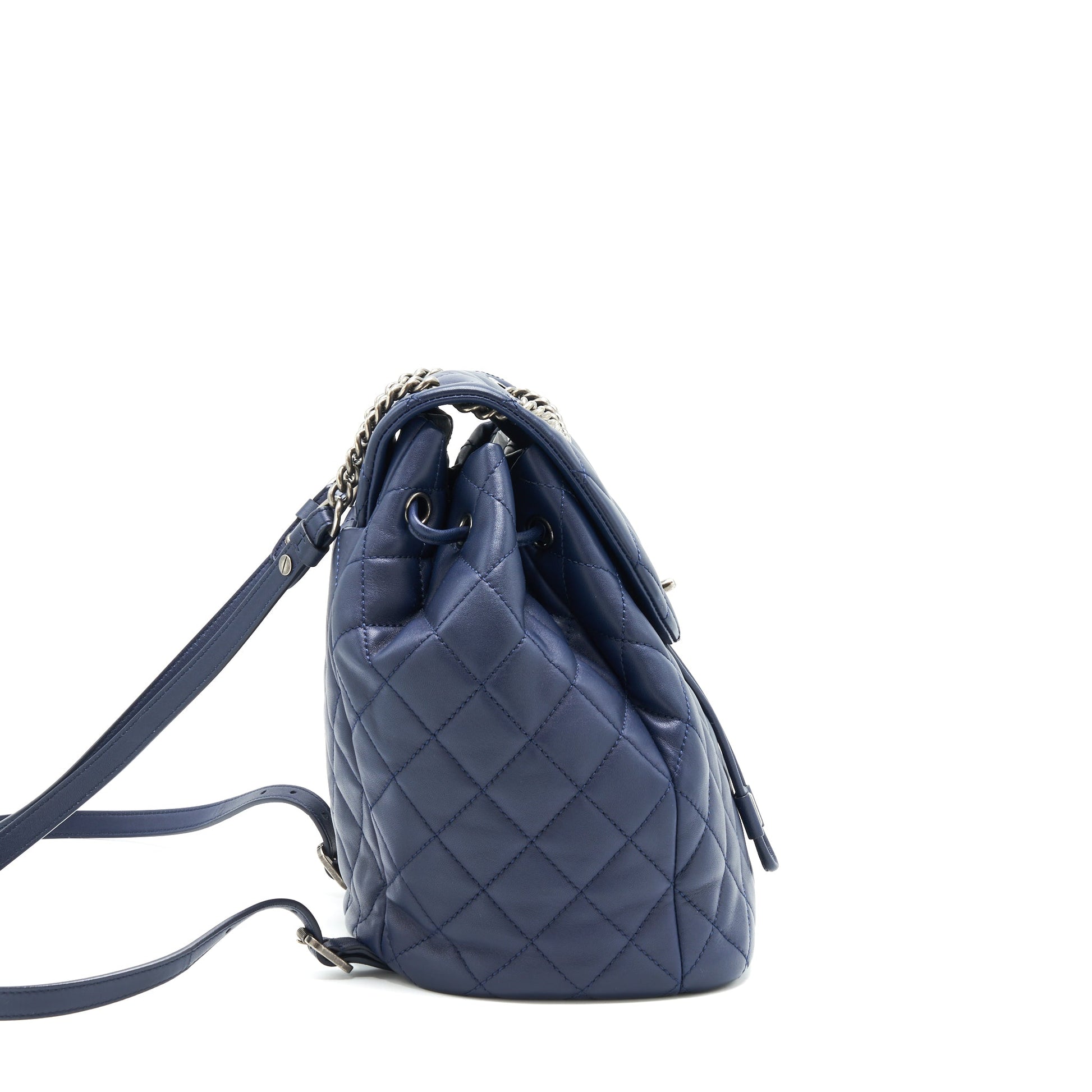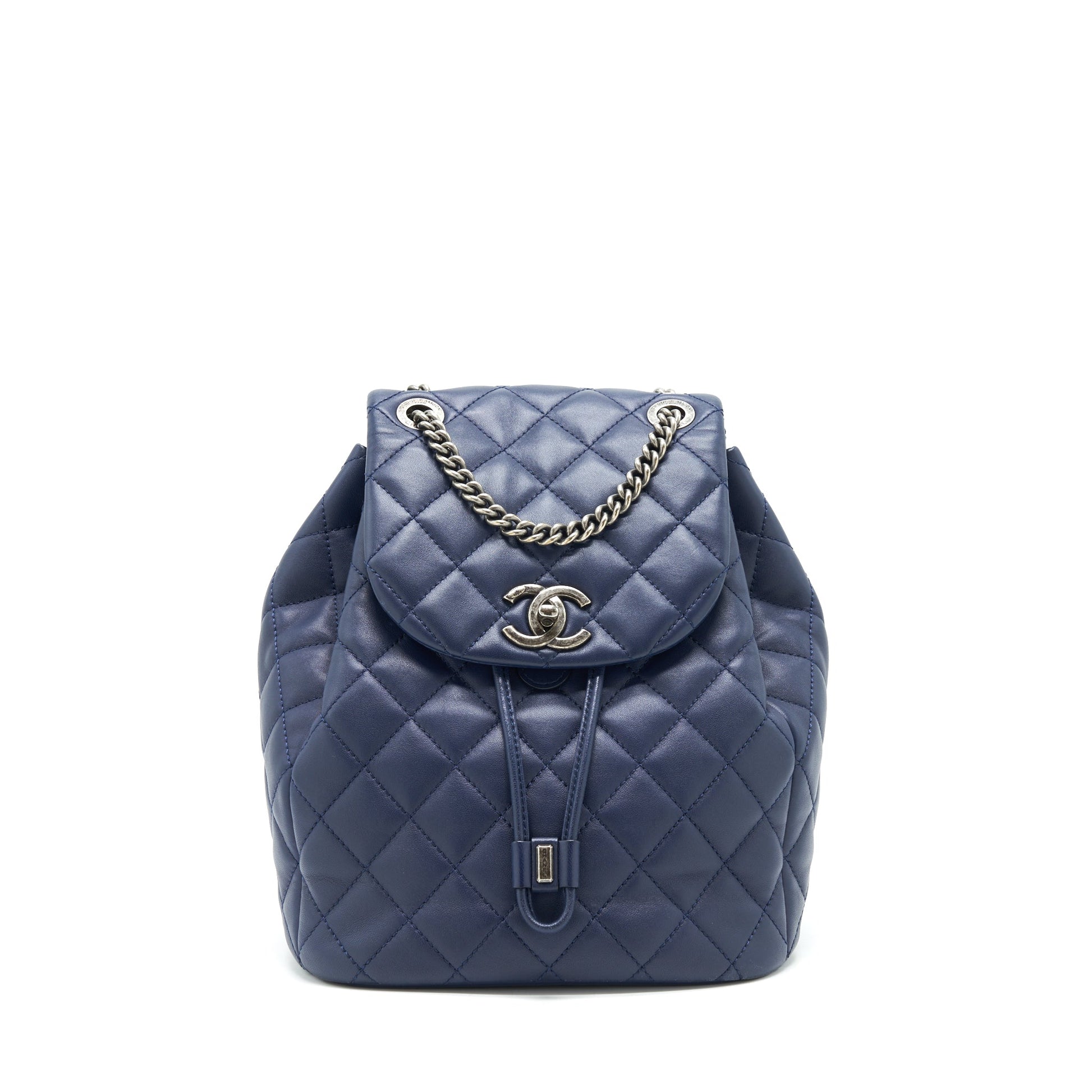 Chanel Quilted Backpack Navy Blue Ruthenium SHW