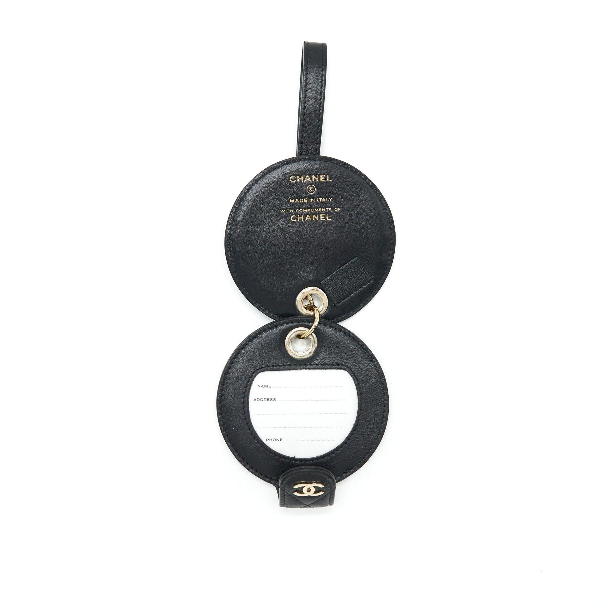 CHANEL QUILTED LUGGAGE TAG LAMBSKIN BLACK LGHW