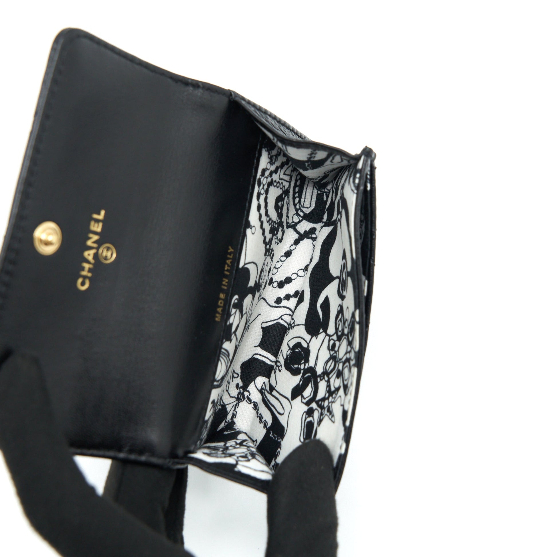 Chanel Quilted Mini Flap Card Holder Lambskin Black GHW