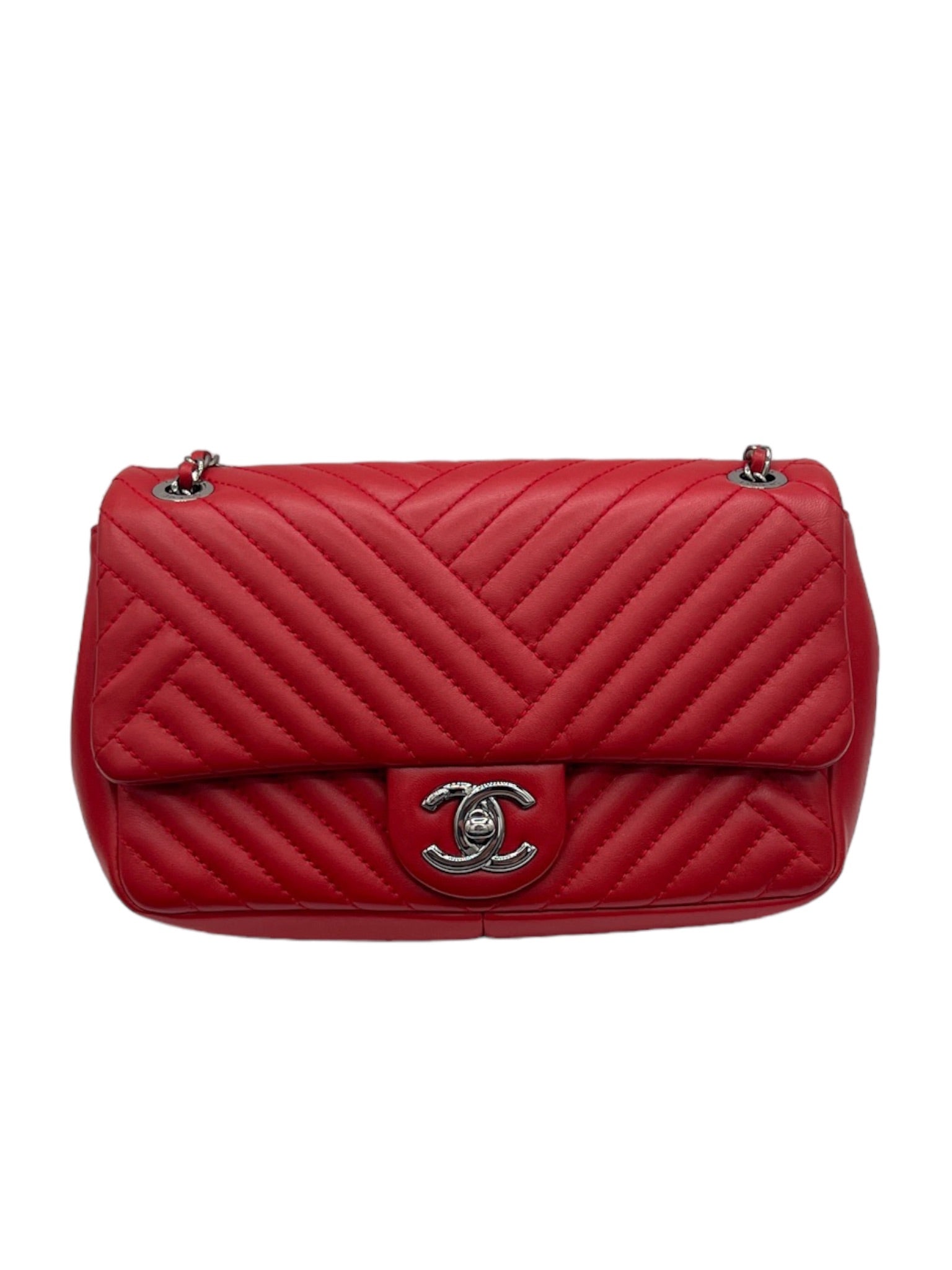 CHANEL - Red CC Crossing Flap Bag Chevron Lambskin