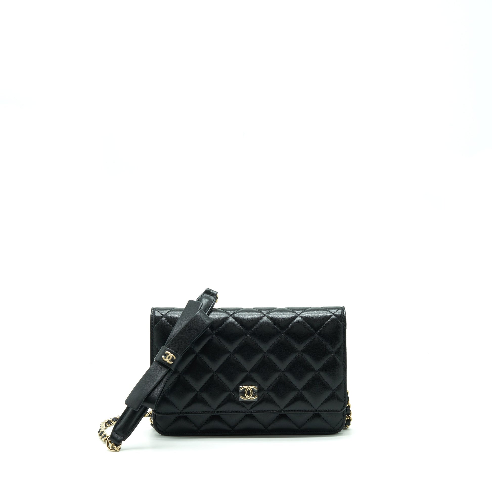 Chanel Ribbon Wallet On Chain Lambskin Black LGHW (Microchip)