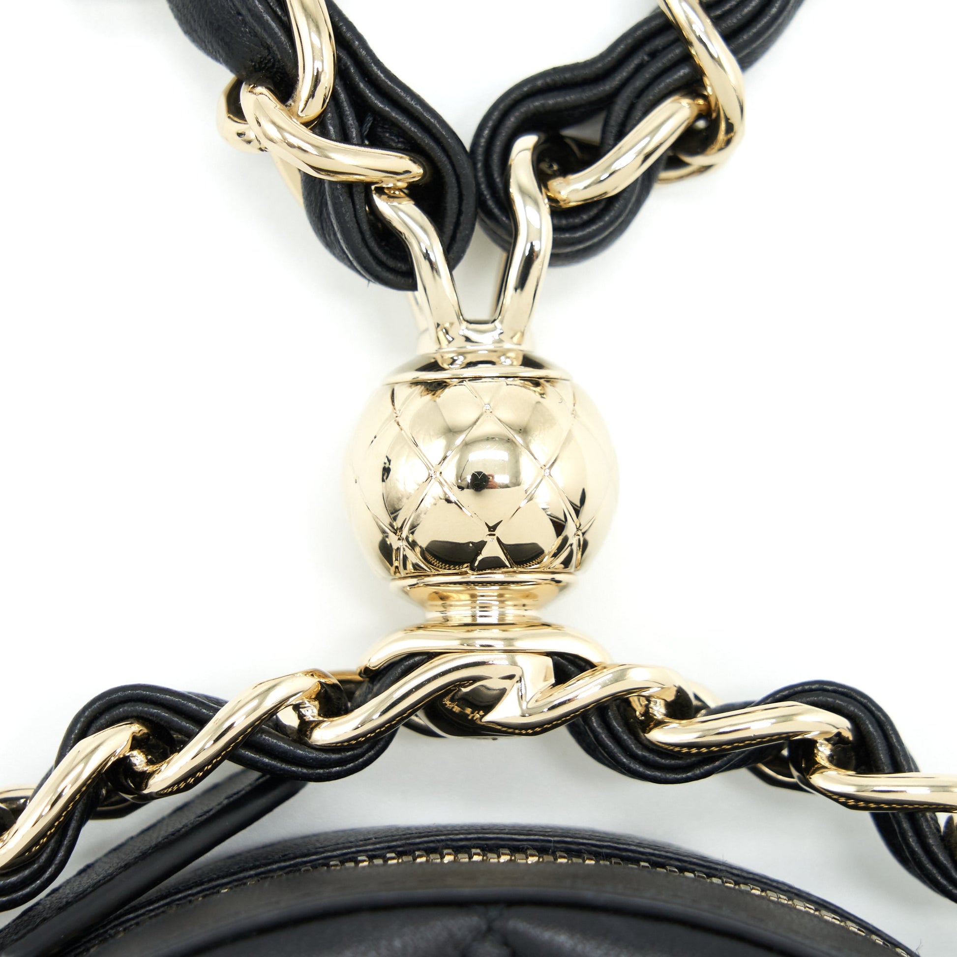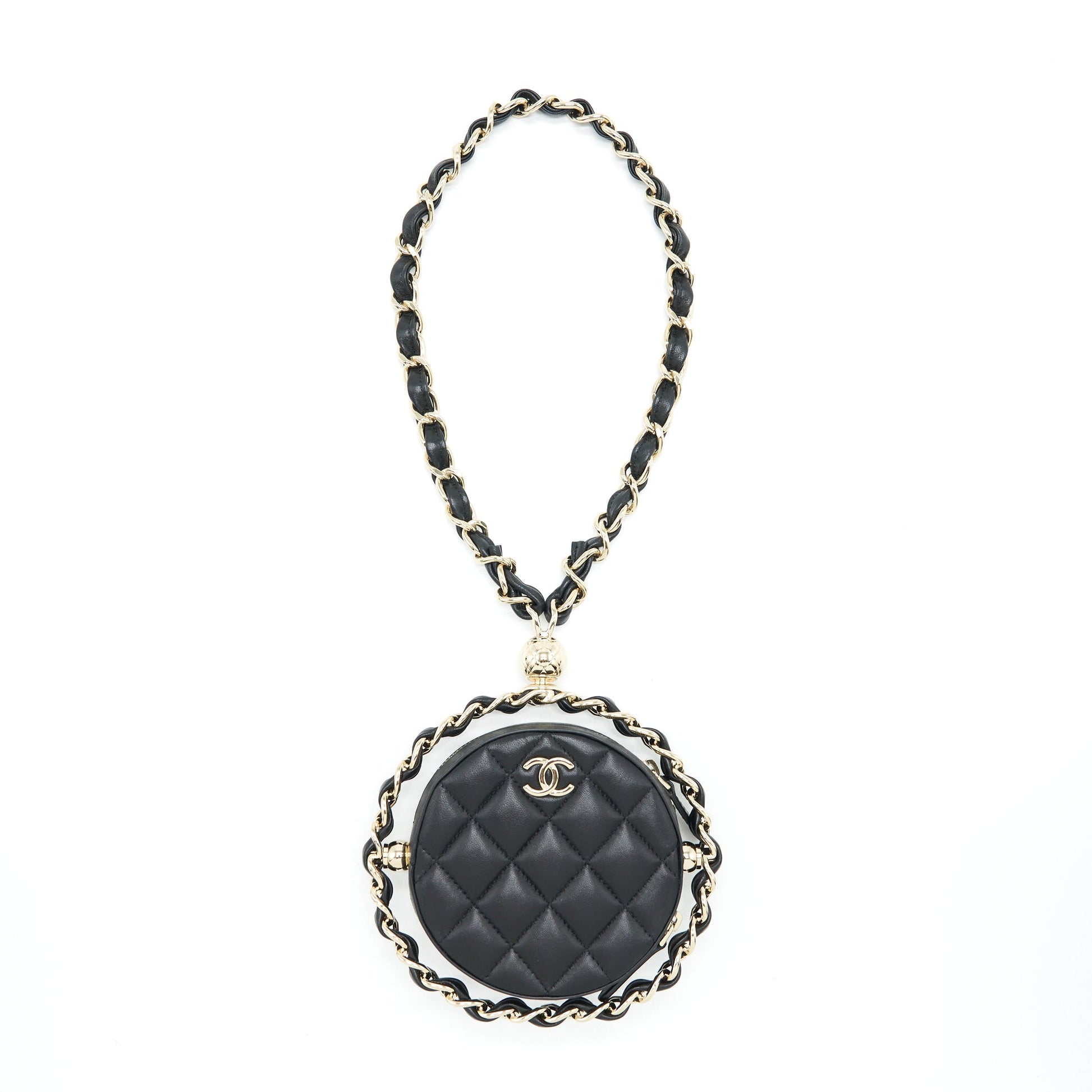 Chanel Round Clutch With Chain Lambskin Black LGHW