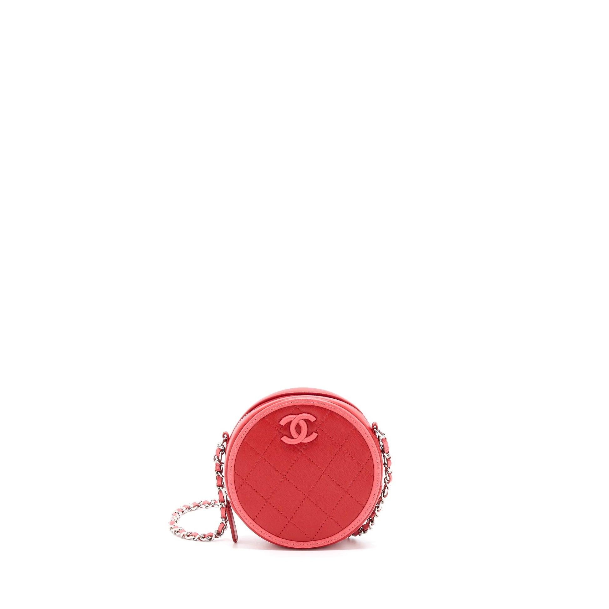 Chanel Round Crossbody Clutch Lambskin Red/Pink SHW