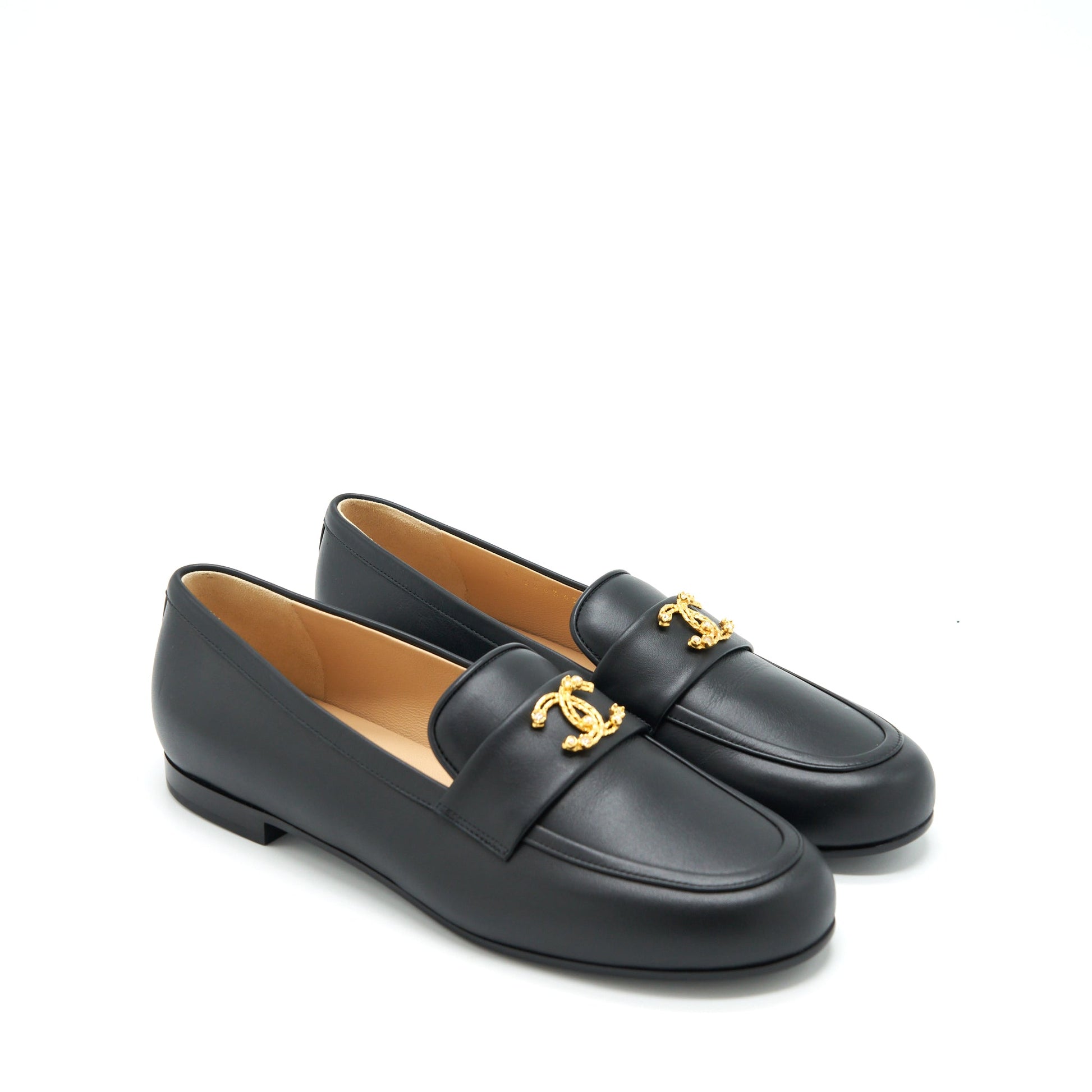 Chanel Size 37 Detailed CC Logo Loafer Black GHW