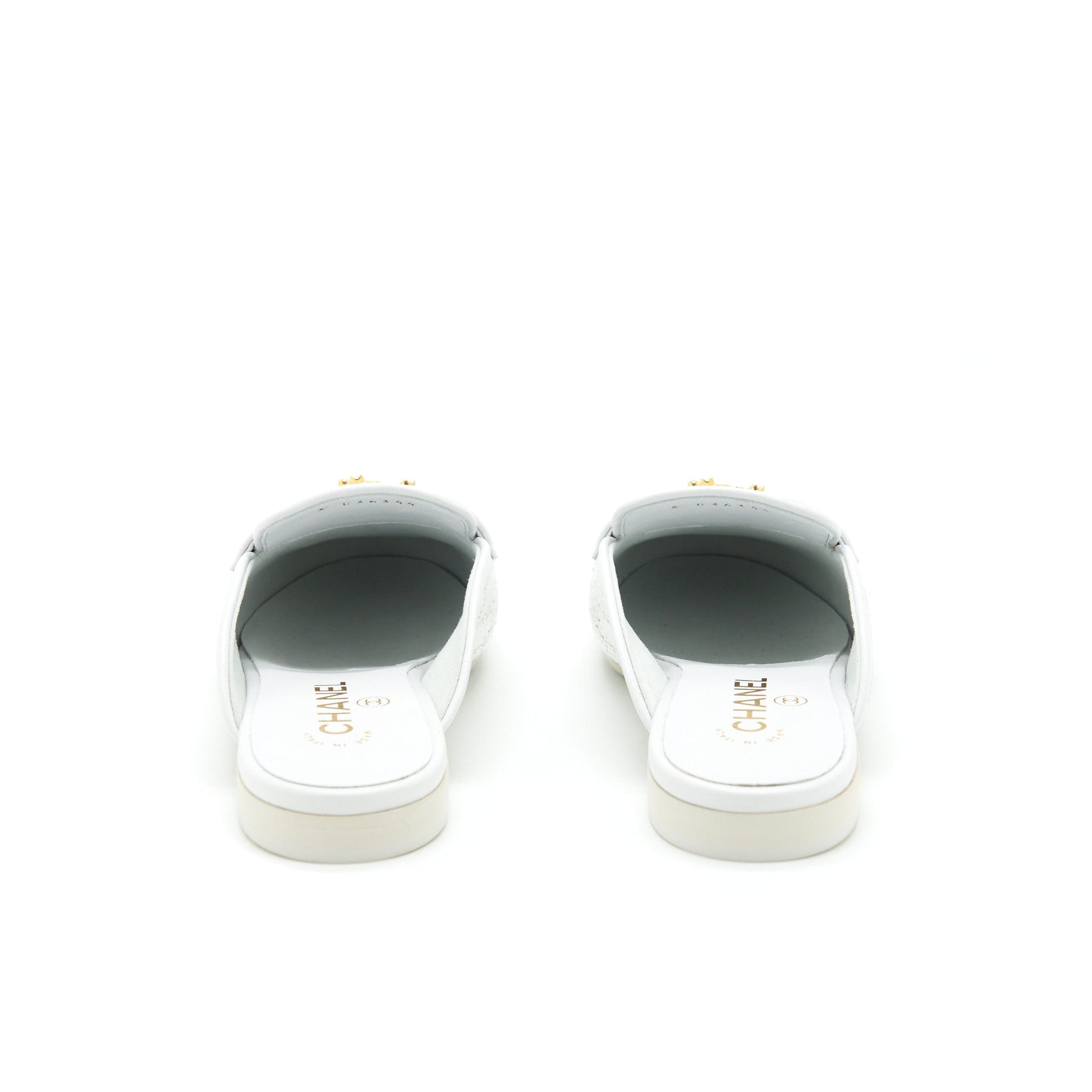 Chanel Size 38 CC Logo Sequins Lambskin Mule White GHW