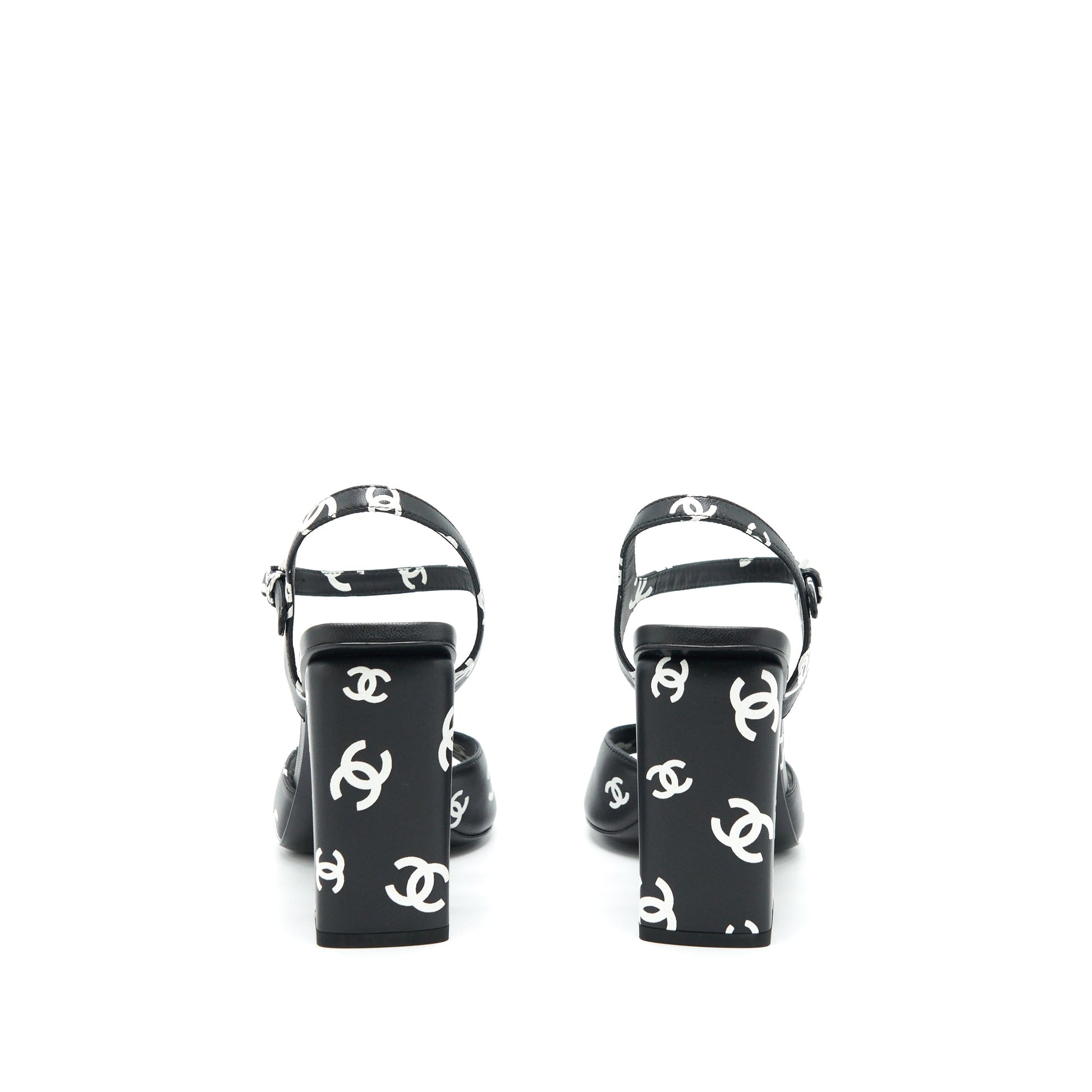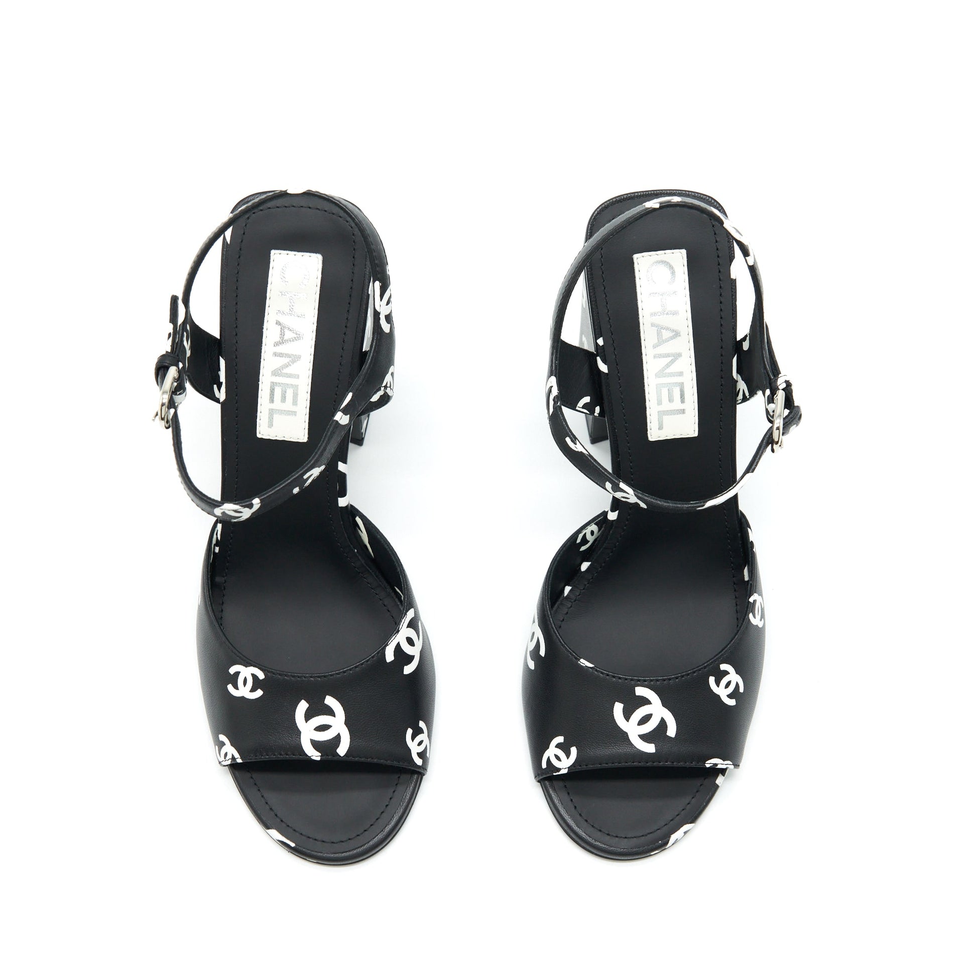 Chanel Size 39 22S Printed Lambskin Sandals Black/White