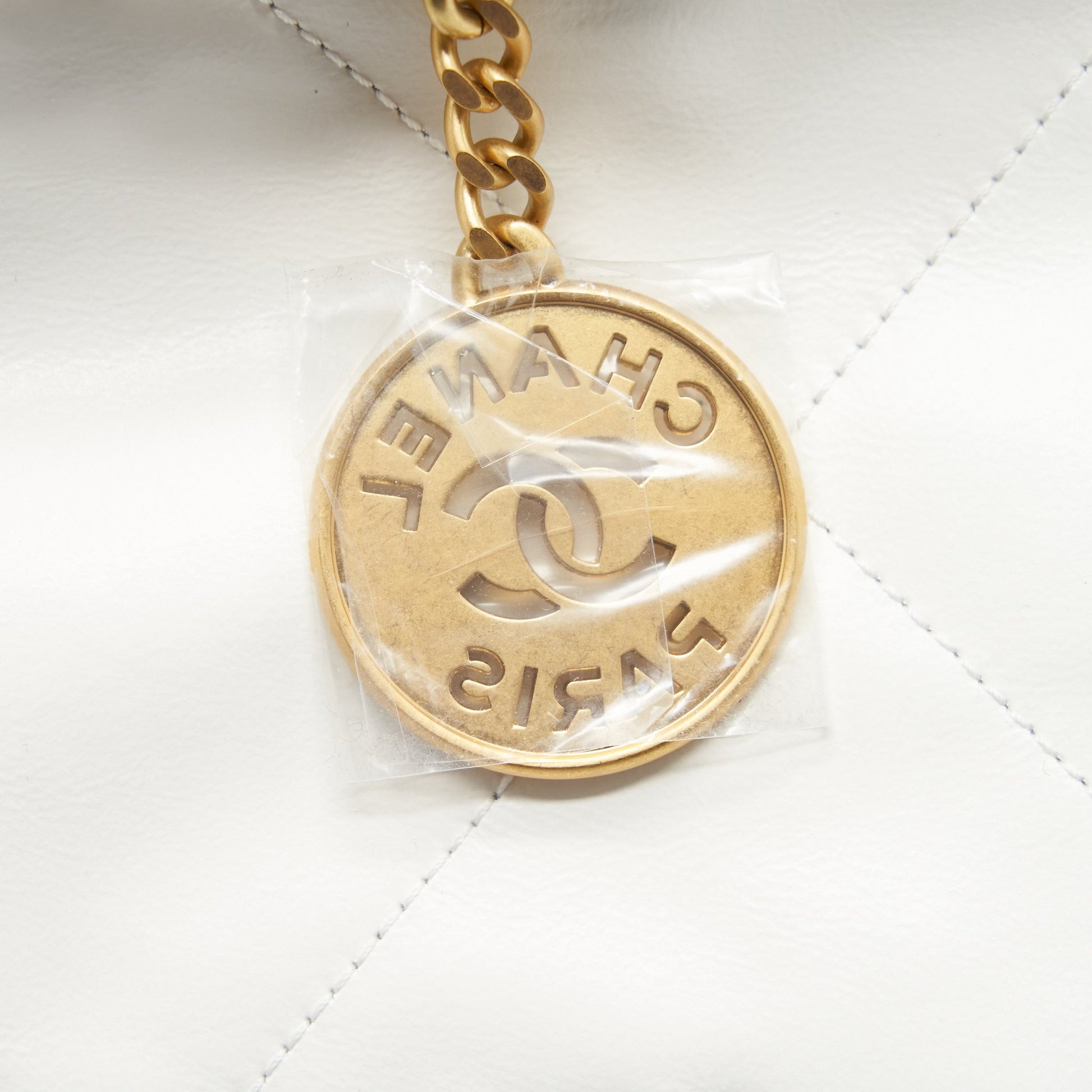 Chanel Medium 22 Bag Shiny Calfskin White GHW (Microchip)