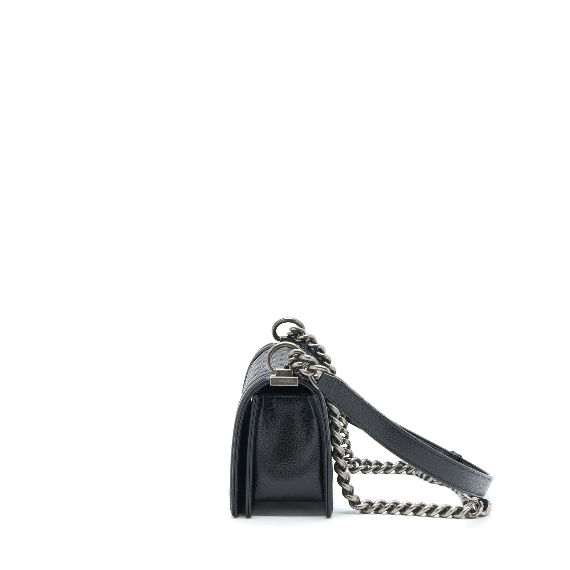 Chanel Small Boy Bag Caviar Black Ruthenium Sliver Hardware (Microchip)