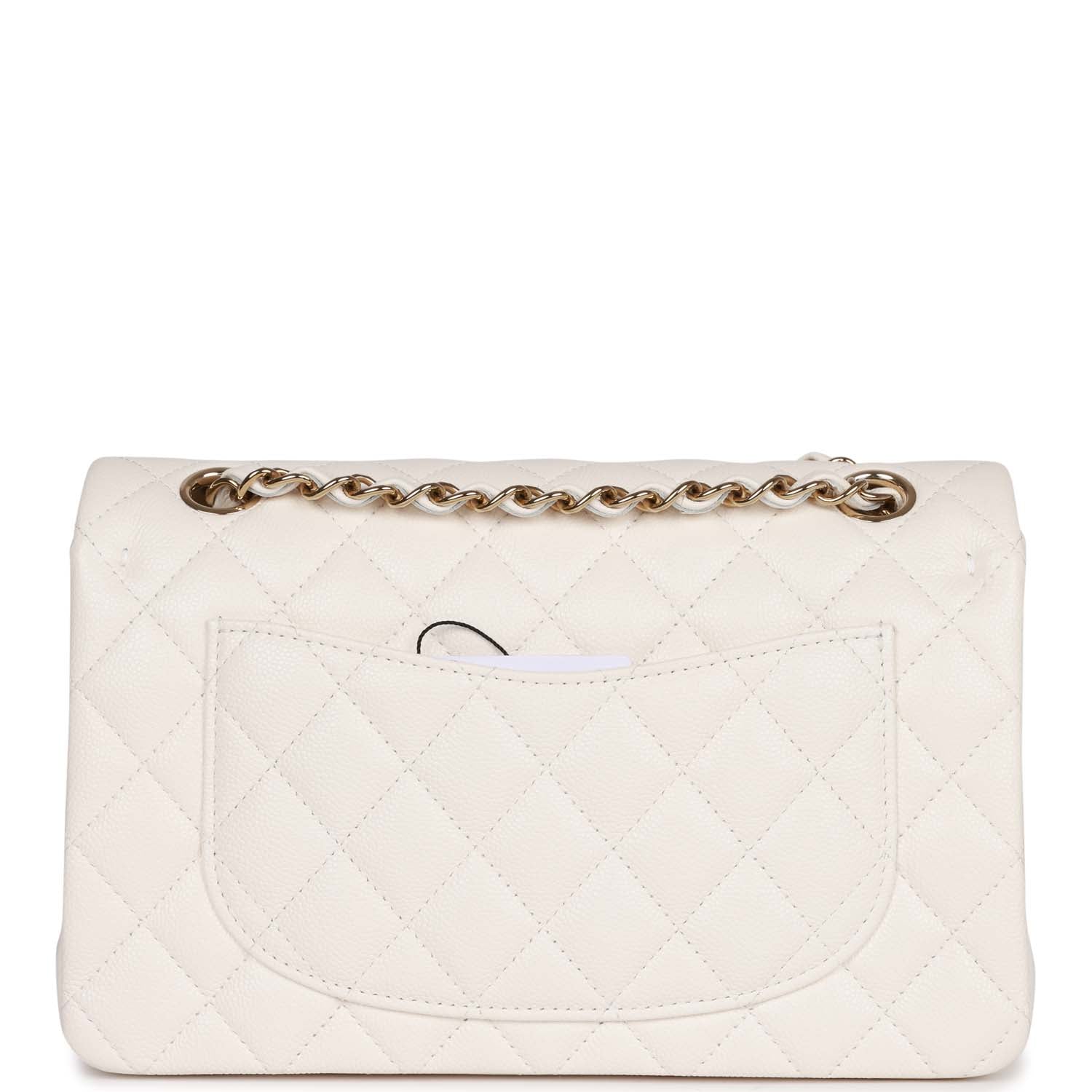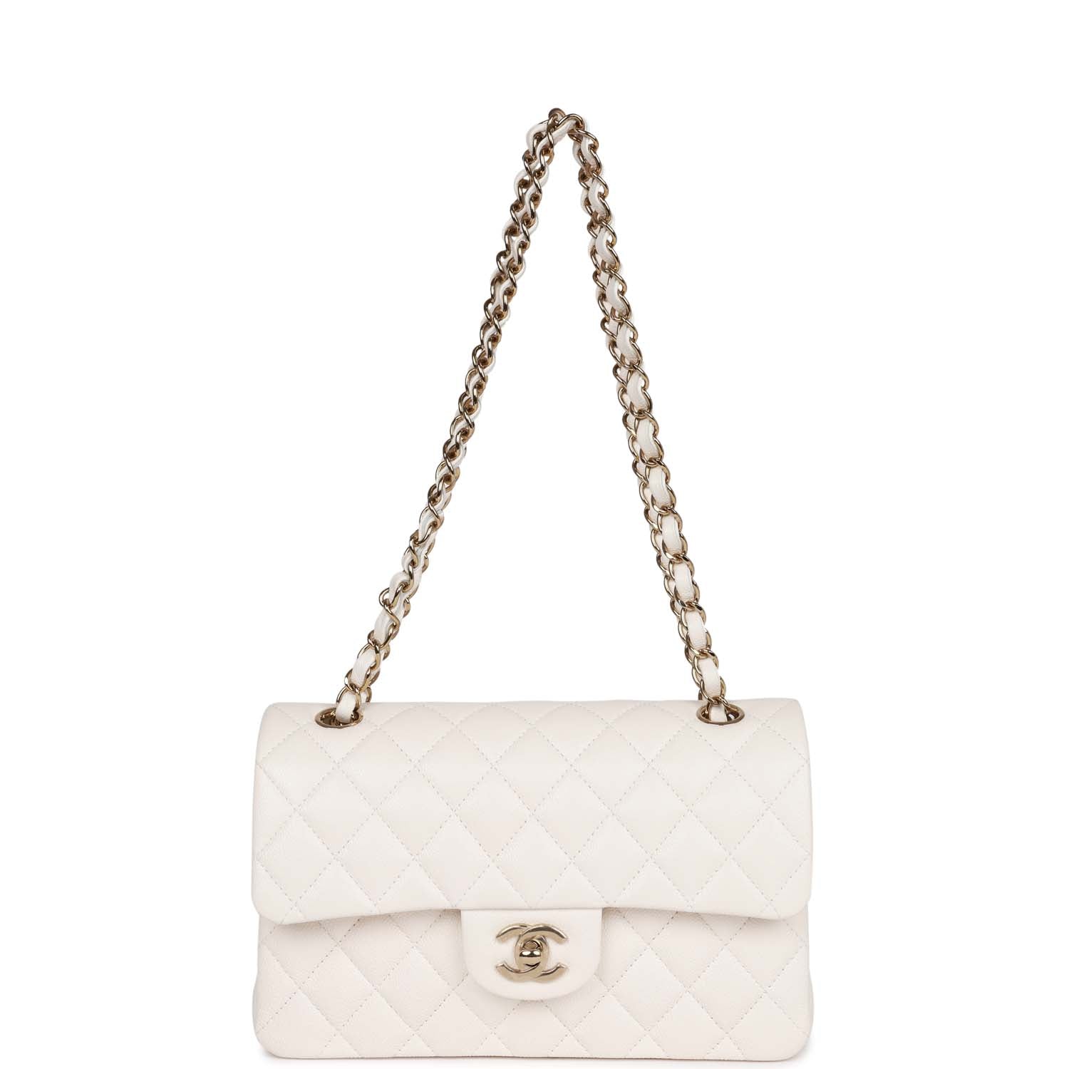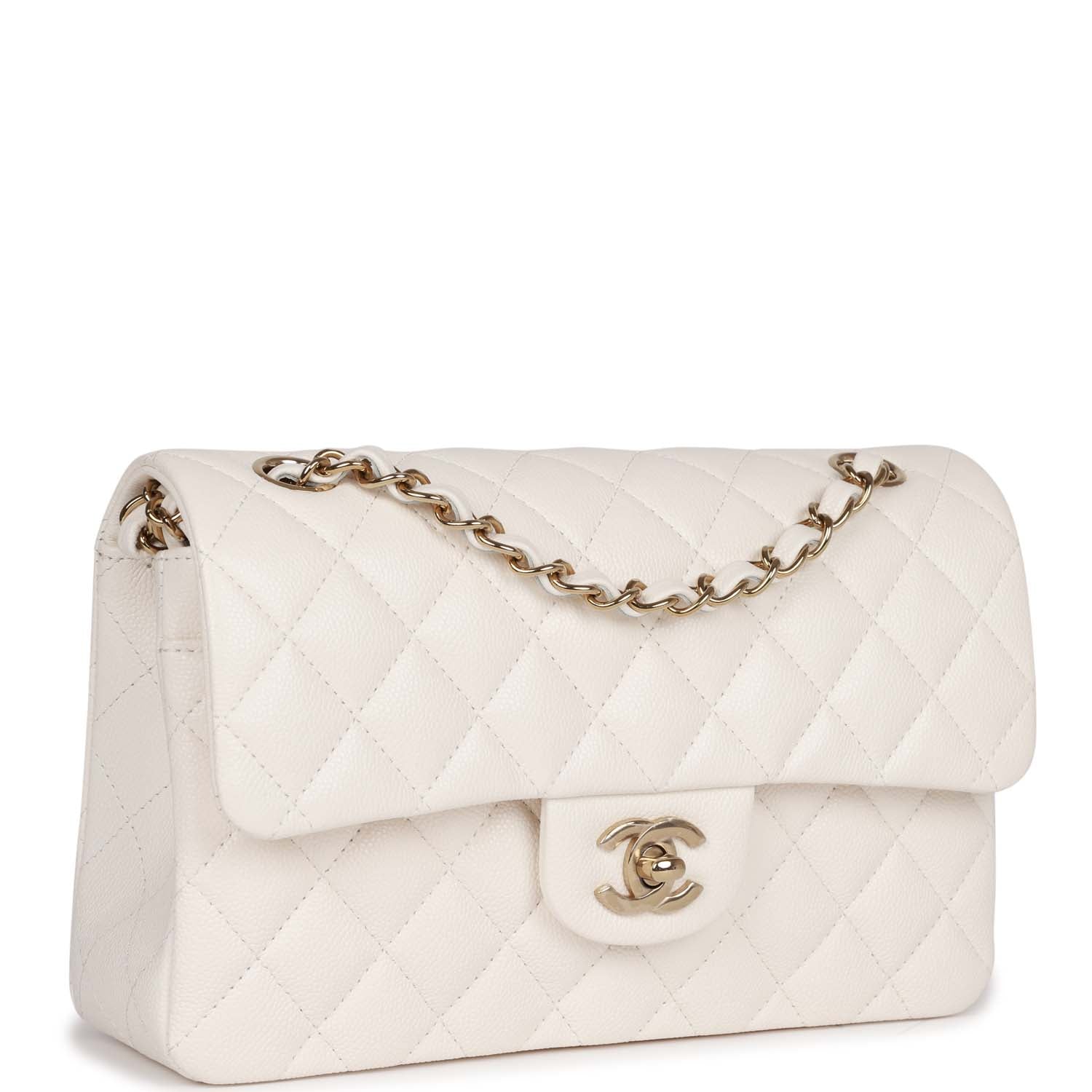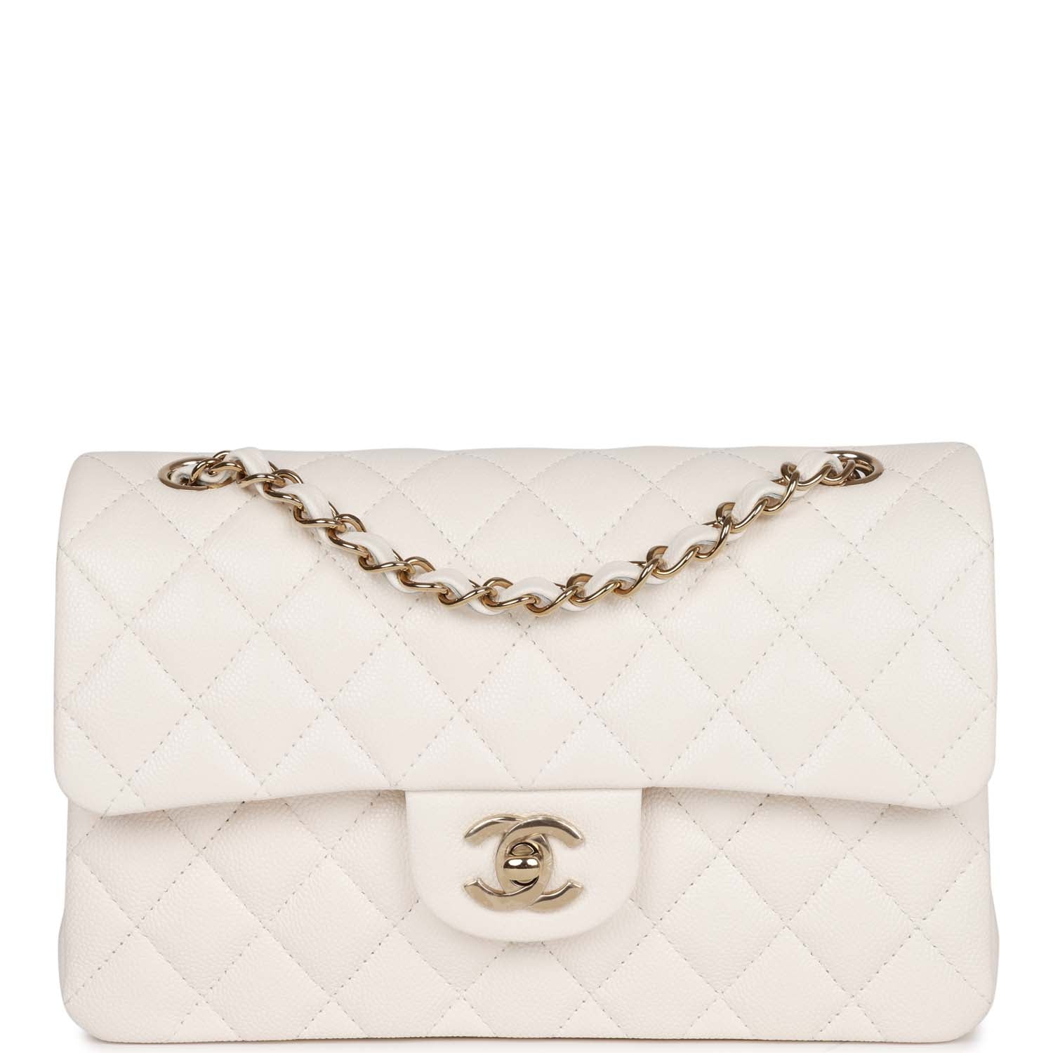 Chanel Small Classic Double Flap Bag White Caviar Light Gold Hardware